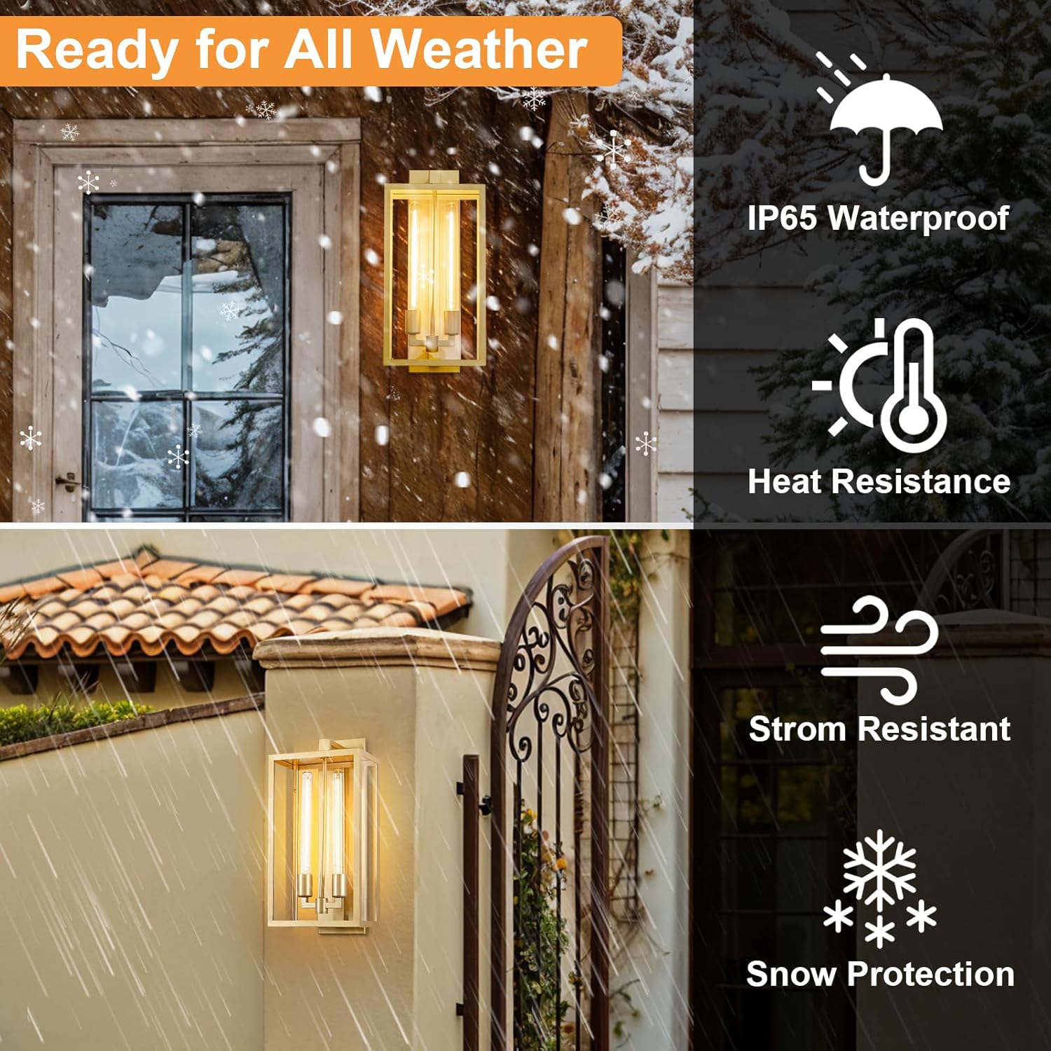 - Waterproof and Rust Proof: The gold modern outdoor lights is IP 65 certified, strong enough to withstand any harsh weather conditions. Such as heavy rain, snow and storms. Our porch & patio lights with high quality materials ensures long-lasting use and anti-corrosion.