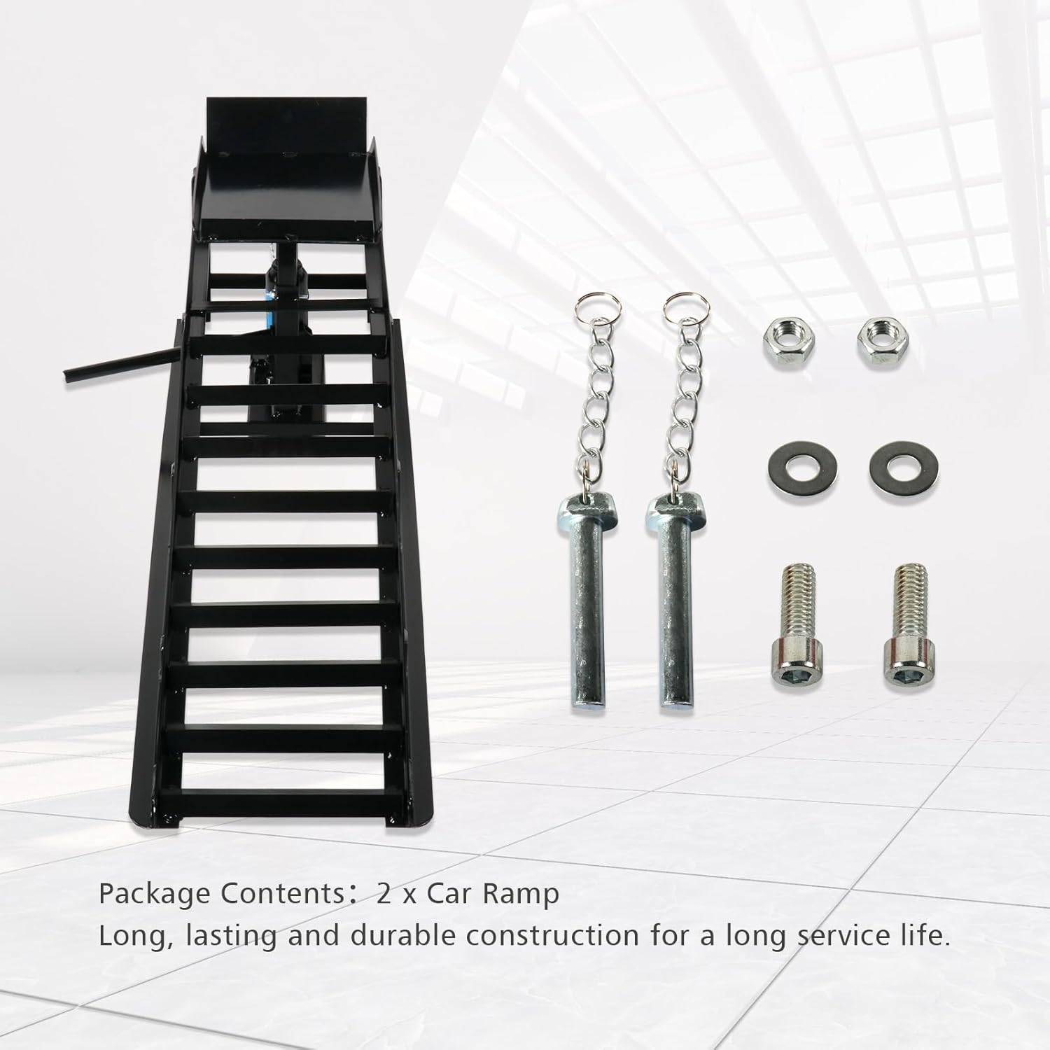 - Package Contents: 2 x Car Ramp. 5 ton hydraulic jack jack built into each ramp provides greater flexibility.