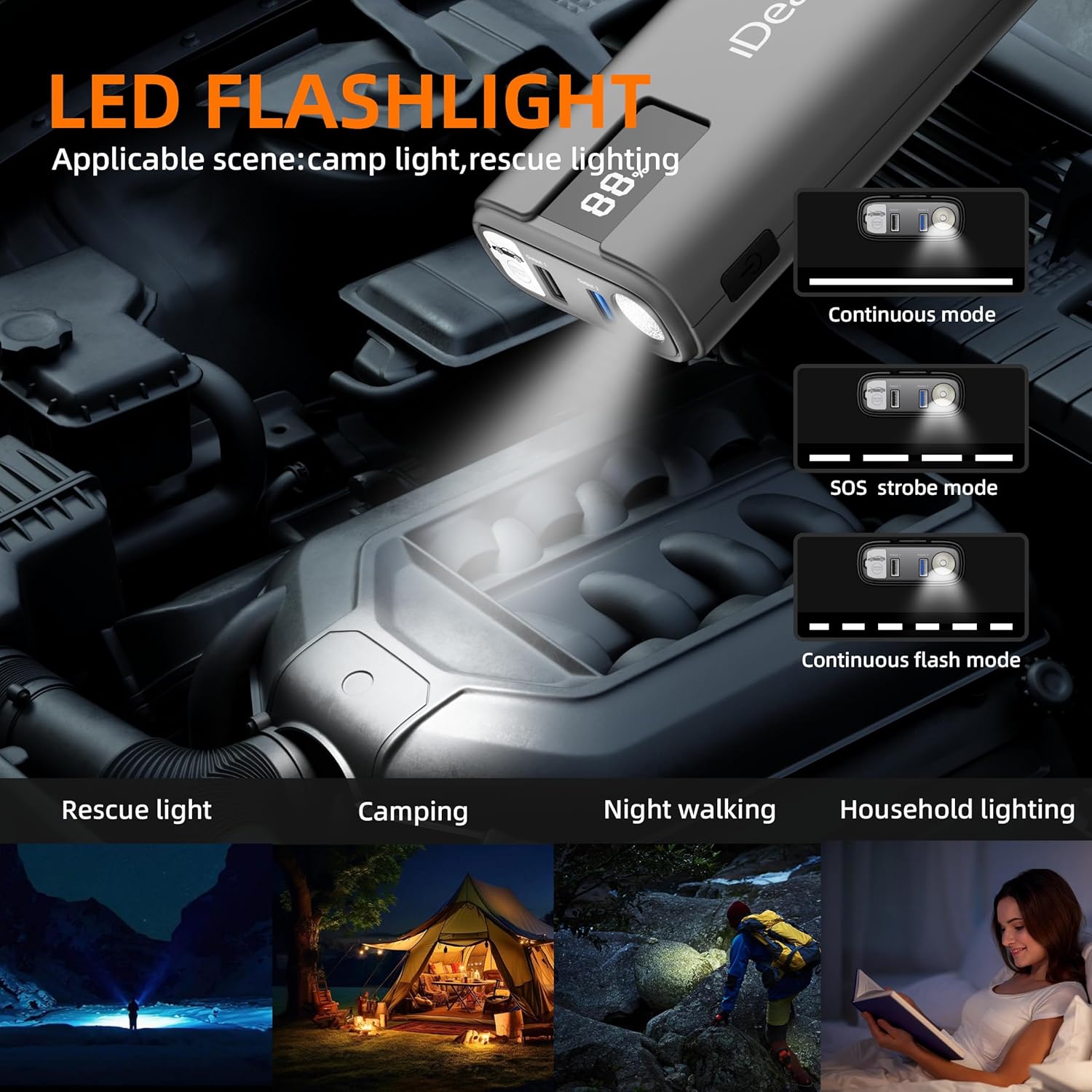 IDEAPLAY J10 Jump Starter, 2000A 12V Car Battery Jump Starter Portable for Up to 8.0L Gas and 7.0L Diesel Engine, Jump Box with Jumper Cables, Type C Fast Charging Battery Jumper with LED Flashlight