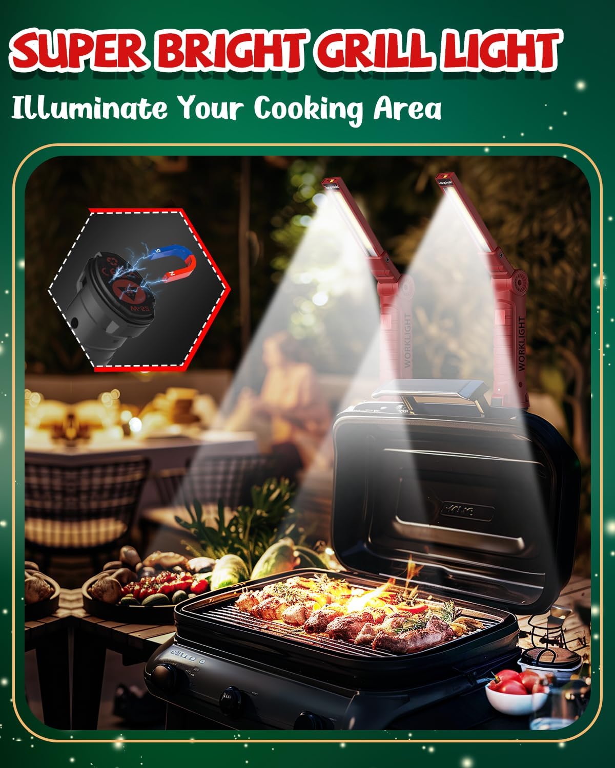 Coquimbo Tool Gifts for Men Dad, Rechargeable Flashlight LED Work Lights Grill Light with Magnetic Base 5 Modes 360° Rotate Mens Dad Husband Him Gifts (4 Pack Red)