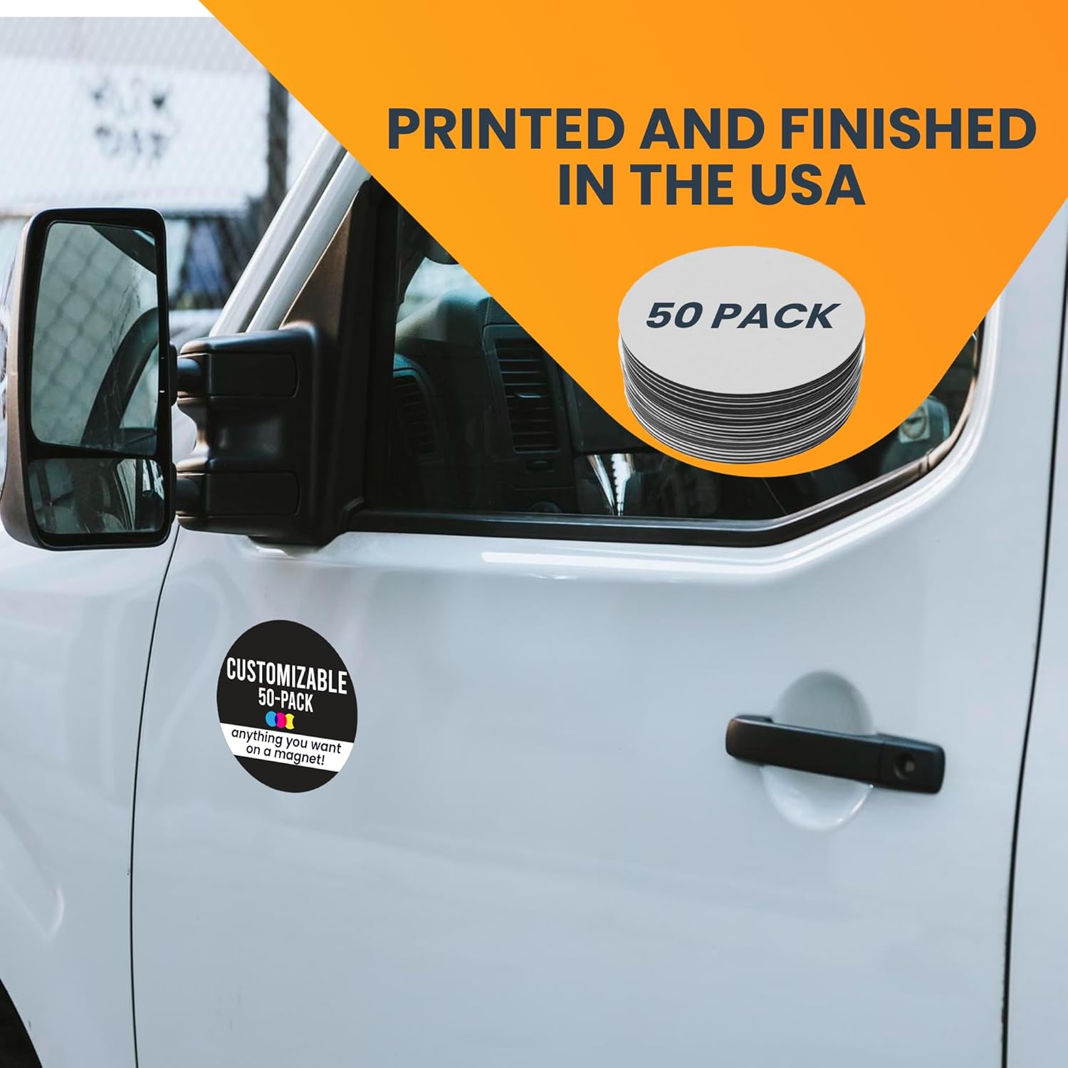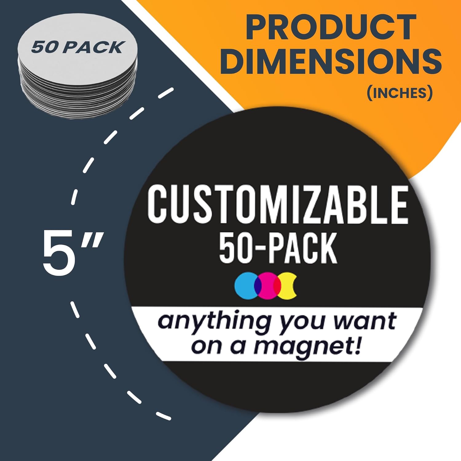 Magnet Me Up Customizable 30 Mil Round Magnet- 5”, 50 PK Weatherproof Car Magnet for Businesses, Sports Teams, Fundraisers & Personal Expression- Custom Text & Logo- Strong Magnetic Vinyl for Vehicles
