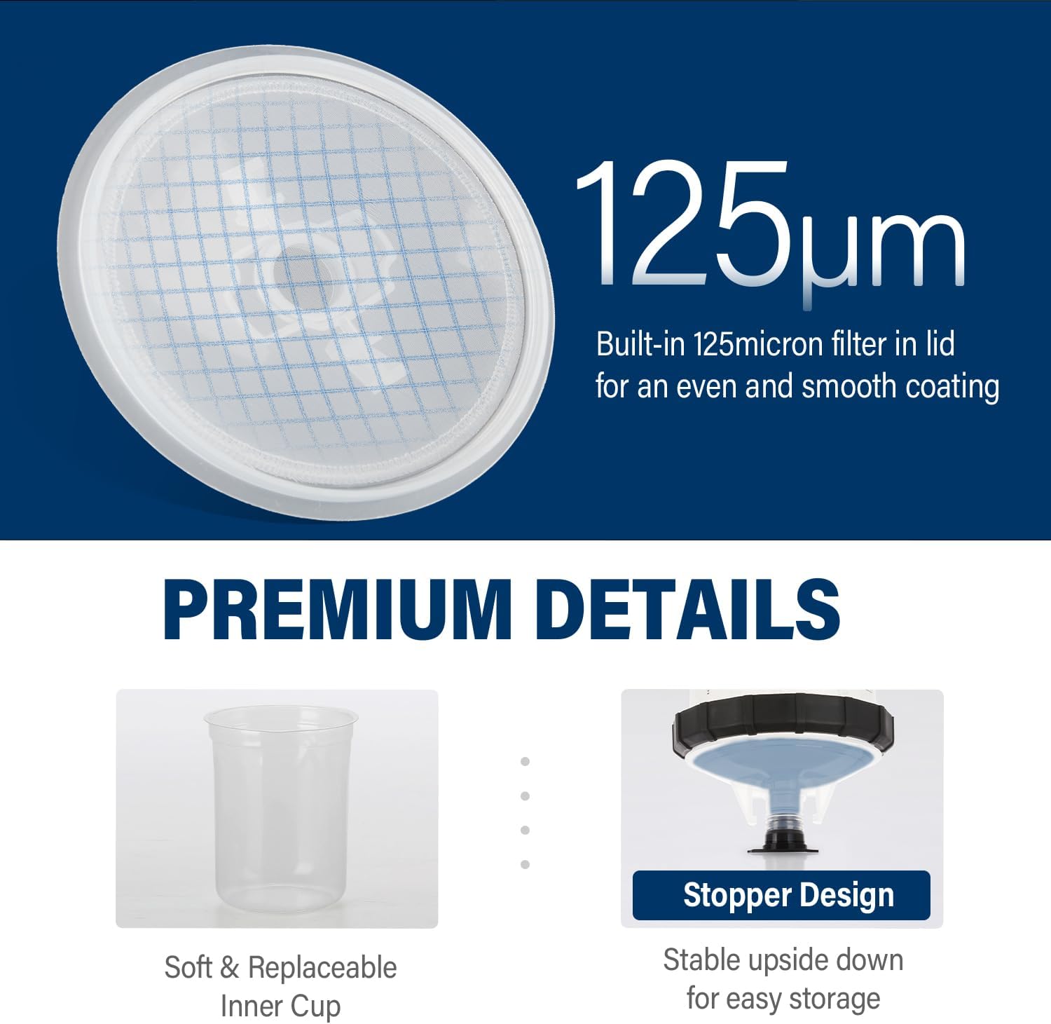 - Efficient Work: The filter design of the lid and the precise scale of the outer cup can effectively reduce the use of measuring tools such as paper funnels and paint mixing cups
