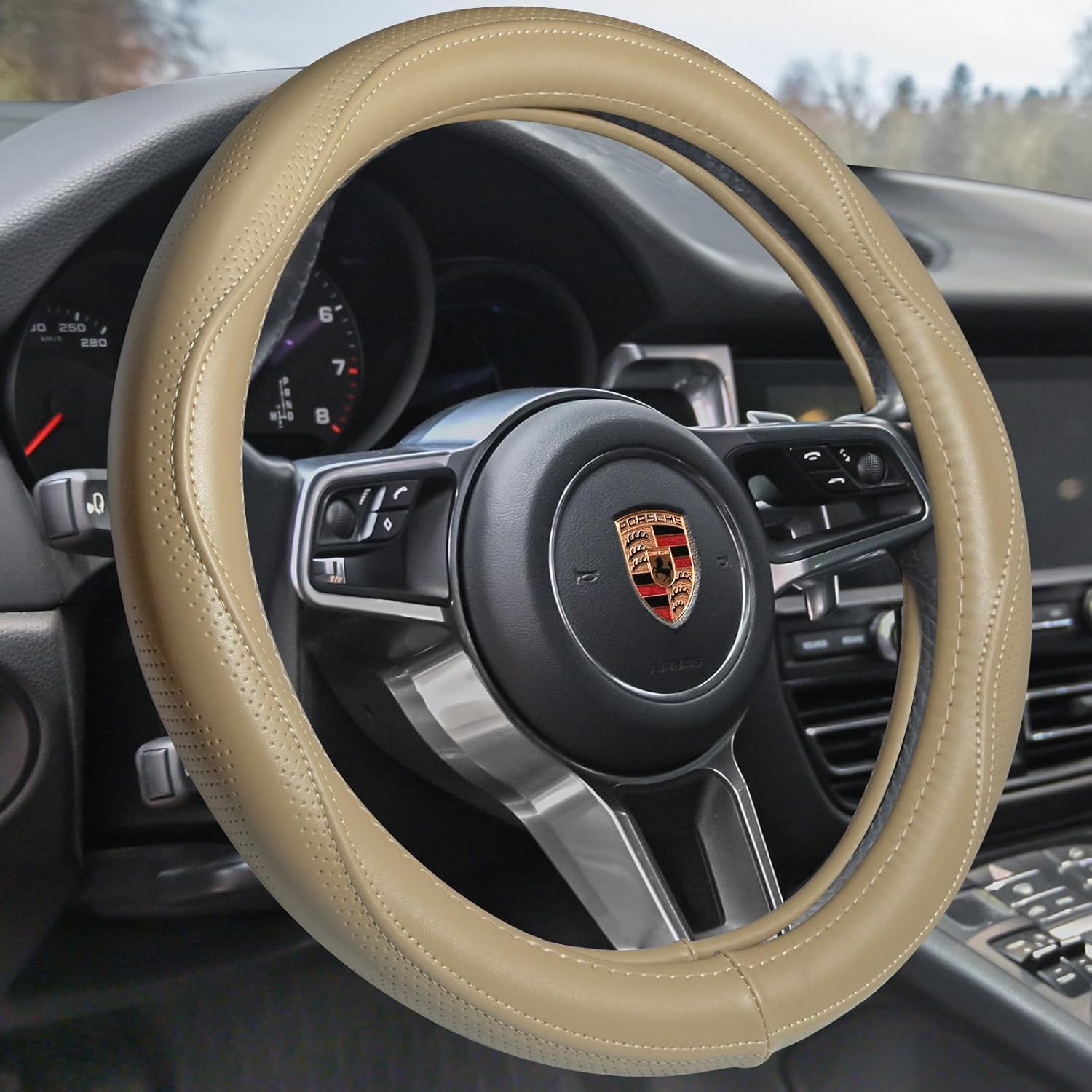 - SOFT & COMFORTABLE TOUCH: Using a real leather streeing wheel cover to help absorb hand pressure from the steering wheel. Itโs soft and durable with a breathable touch.