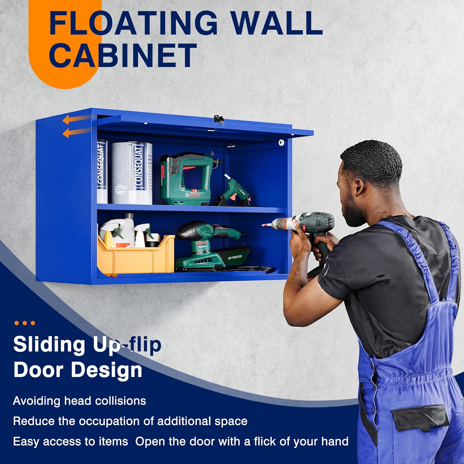 - 『SLIDING Up-Flip DOOR』 Yizosh wall cabinet features a special opening and closing door design. Sliding Up-Flip door allows you to open the door easily and frees up your hands to access the item in the cabinet more conveniently. The door can slide into the cabinet, which can prevent accidental head-banging
