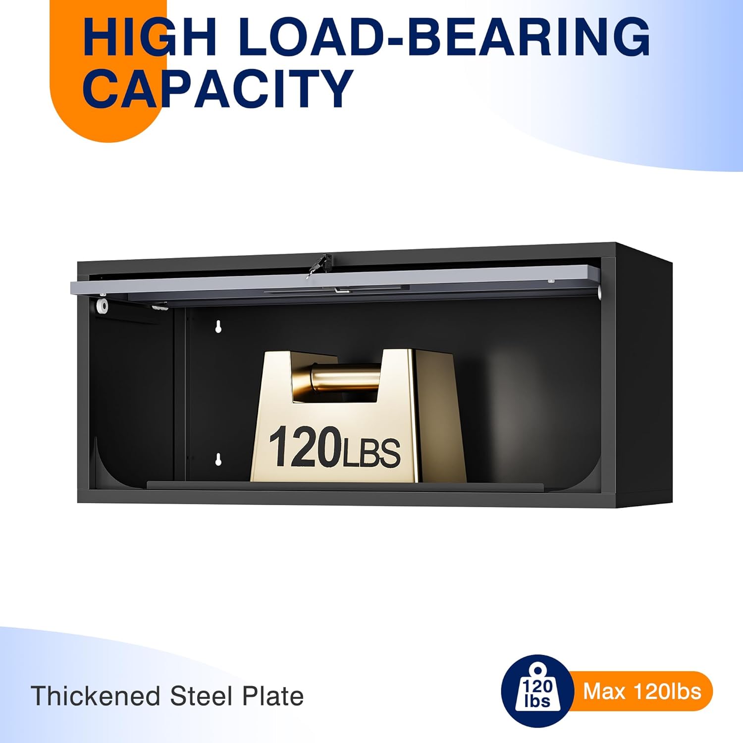 Yizosh Metal Garage Wall Cabinet with Doors, Wall Mounted Metal Storage Cabinet, Floating Garage Tool Cabinet for Garage, Basement, Kitchen, Warehouse (Black Gray, 13.7" H)