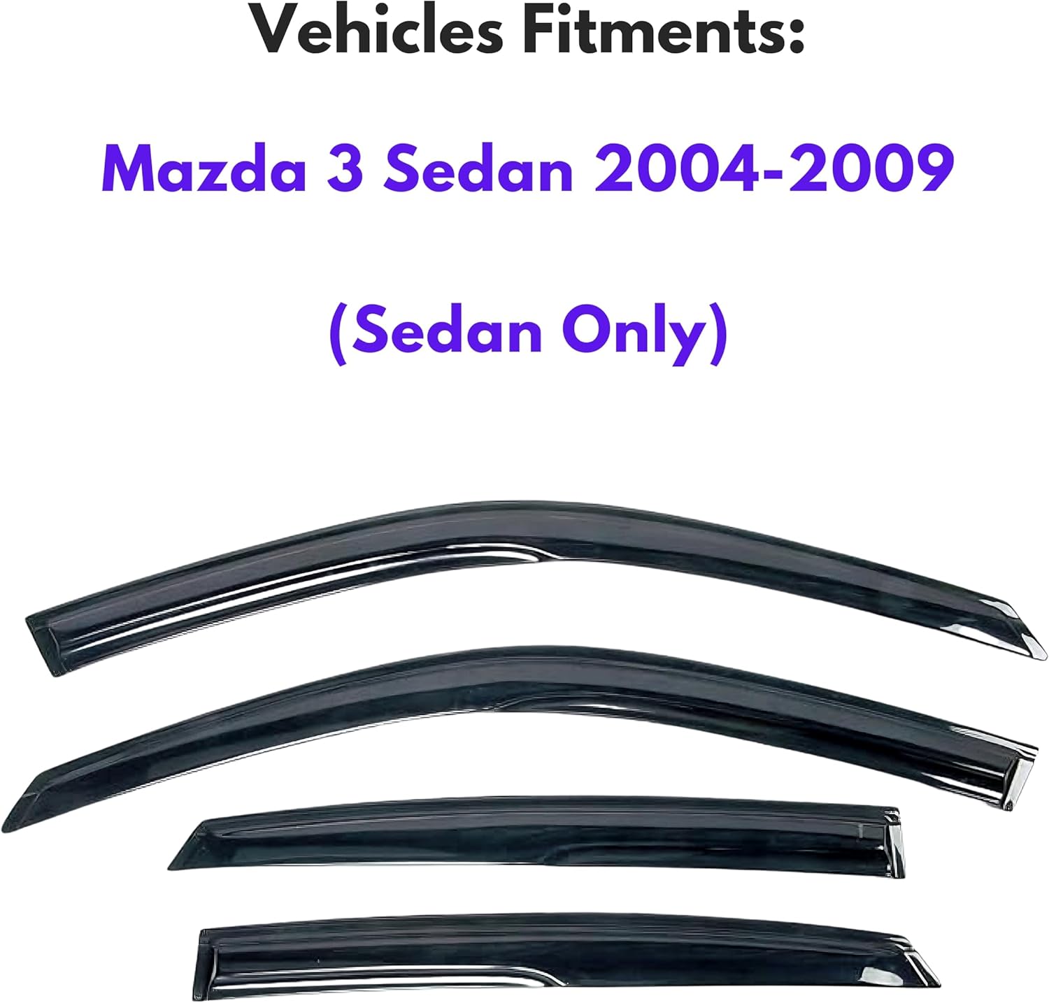 - 【Perfect Fit】KPY window visors rain guards vent deflectors compatible with Mazda 3 Sedan 2004 2005 2006 2007 2008 2009 (Mugen Style)