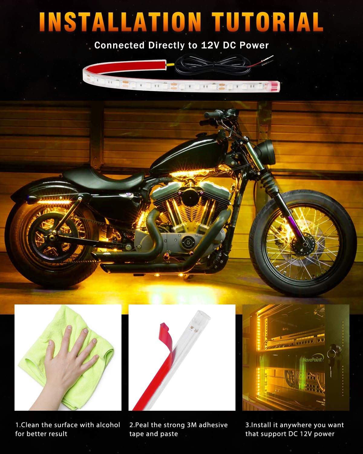 - 【Wide Applications】This car led strip lights can be used for Car Truck Motorcycles Boat Led Atmosphere decoration light Strip for footwell, front grille, rear trunk, under car body or any surface you want; Also used for home cabinet floor light Decoration Light indoor outdoor, Christmas , New Year Festival, KTV, clubs, shopping malls, Party decoration, universal for DC 12V power source.