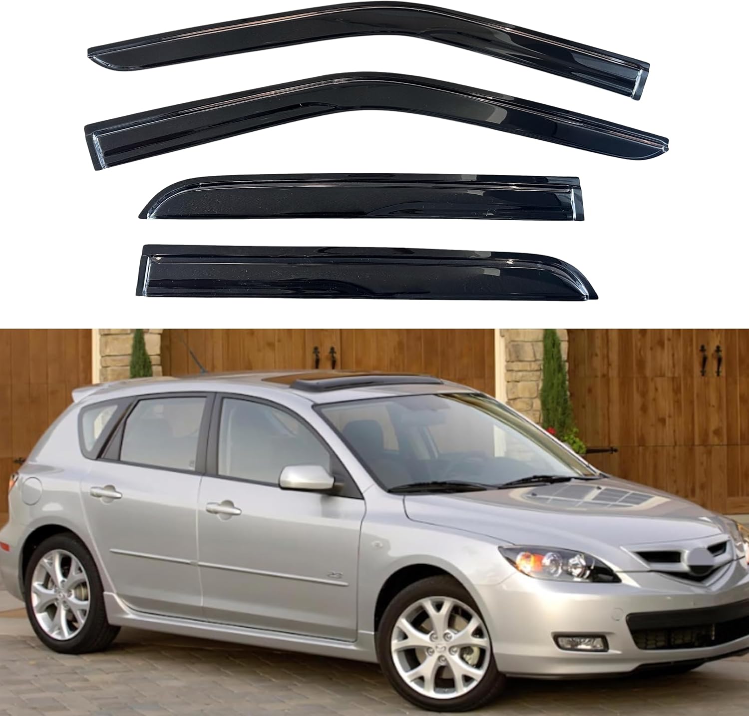 - 【Perfect Fit】KPY window visors rain guards vent deflectors compatible with Mazda 3 Hatchback 2004 2005 2006 2007 2008 2009 (Mugen Style)