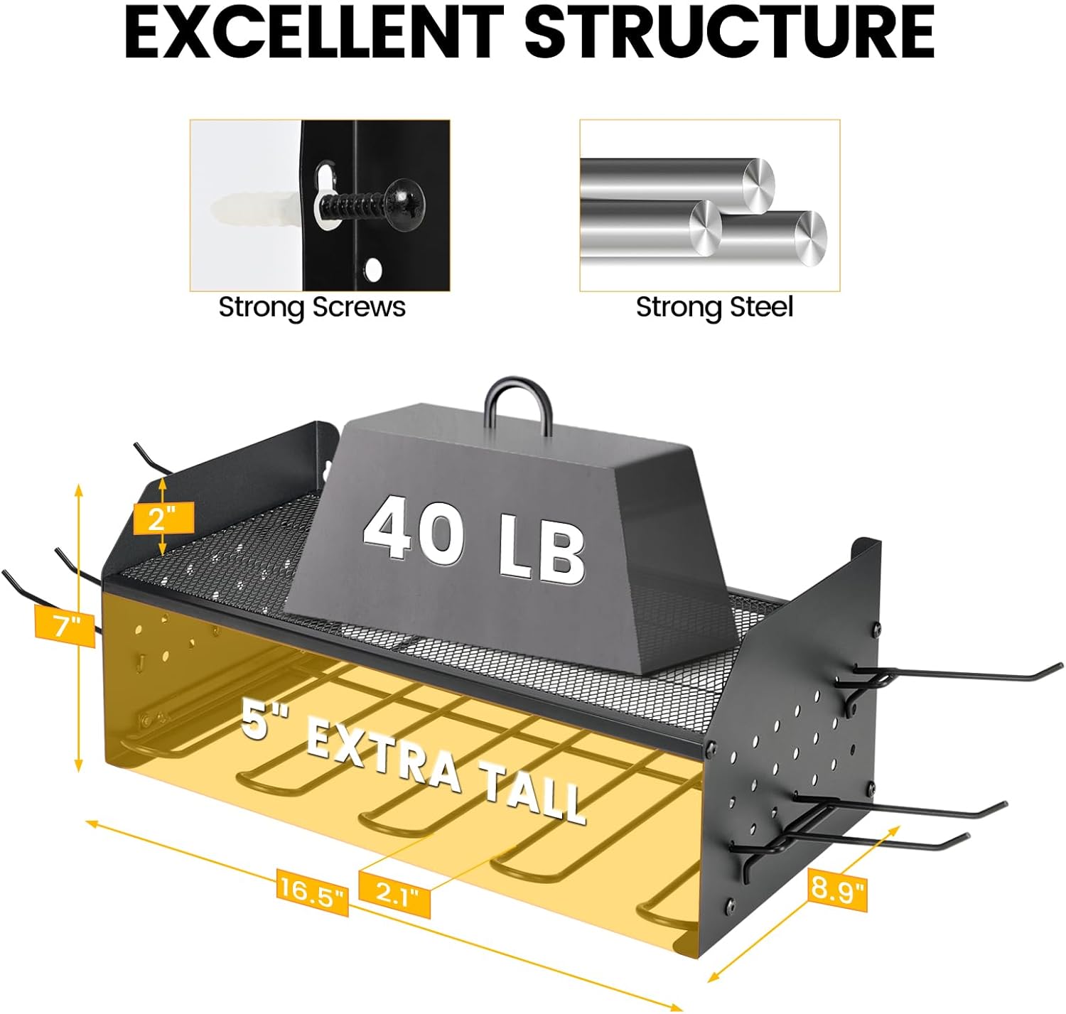 - Versatile Side Pegboards: Hang garage tools such as spanners on 8.9"W × 7"L side pegboards with 4 included hooks, supports 0.25" pegboard accessories for DIY customization, improves load-bearing capacity and stability of the power tool rack