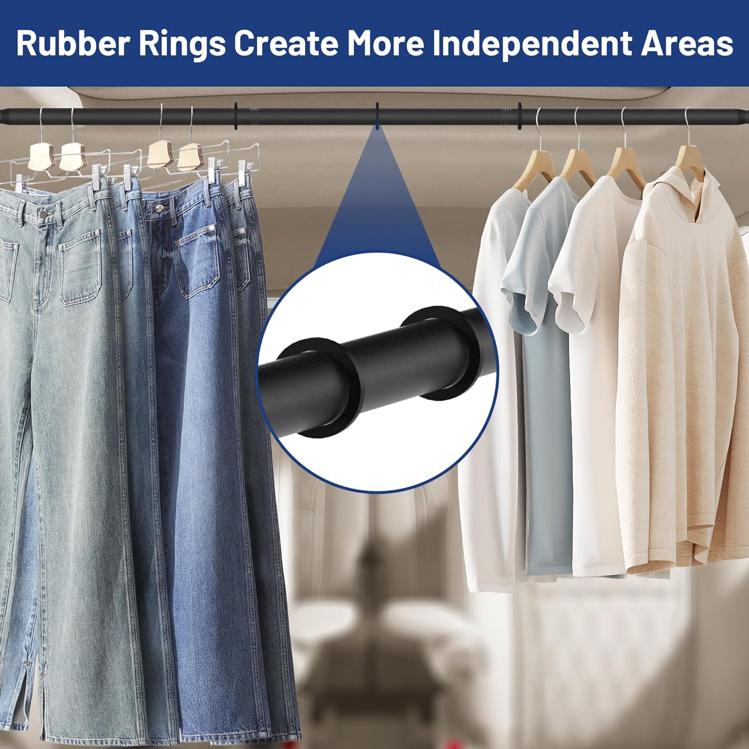 - ► Enhanced Stability with Anti-Slip Features - Featuring a non-slip matte surface and equipped with 8 anti-slip rubber rings, our car clothes bar prevents garments from slipping or bunching up, even during sharp turns or bumpy rides. Hang suits, jackets, dress shirts, pants, and more confidently, knowing they'll stay securely in place.