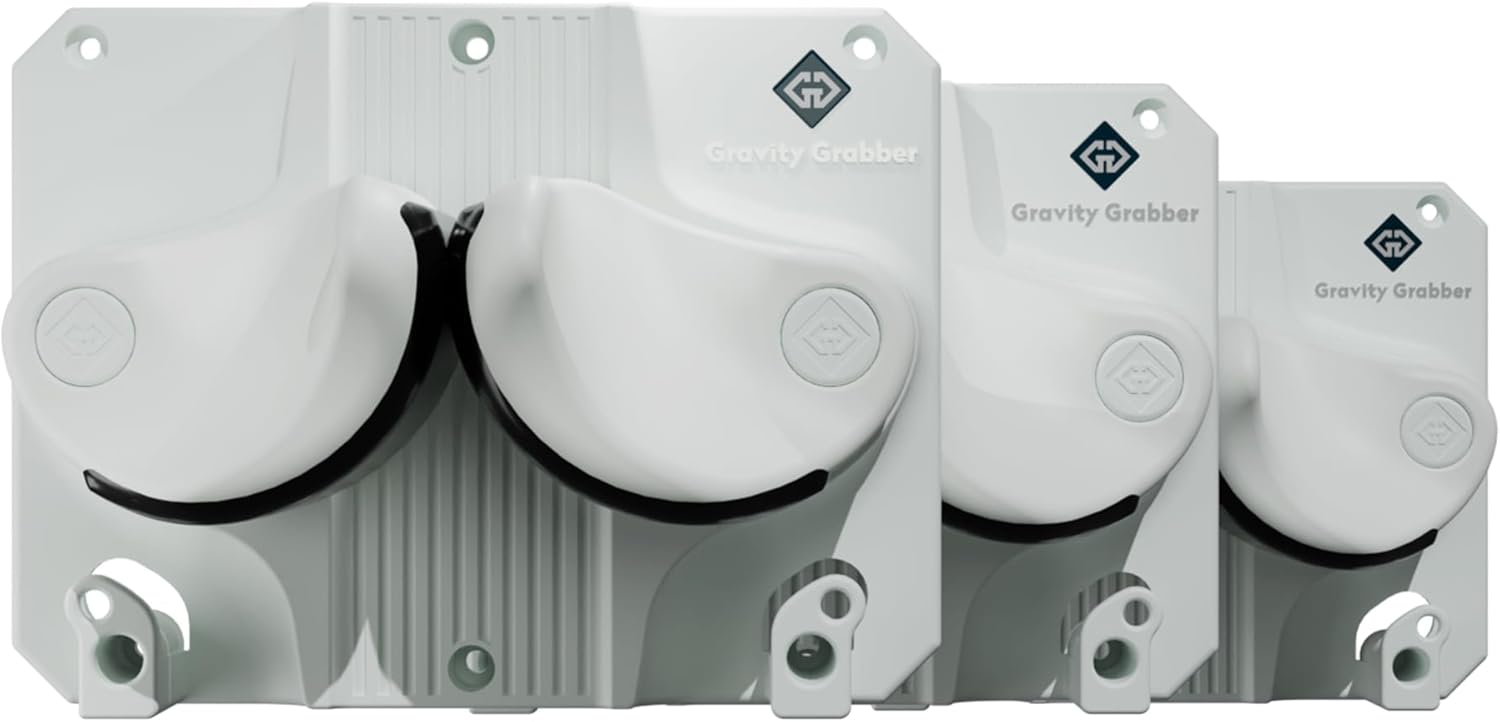 - & SCHLOADS MORE - Keep that garage-mahal organized. Hang shovels, rakes, picks, garden, bike, and home tools up to 20lbs! If you store your skis somewhere else in the off season, Gravity Grabber still has your back. With other equipment in mind, we wanted a design that allows for more than just skis. Each box includes 1 Gravity Grabber, 6 dry wall hangers, 6 screws, 1 manual, 1 sticker.