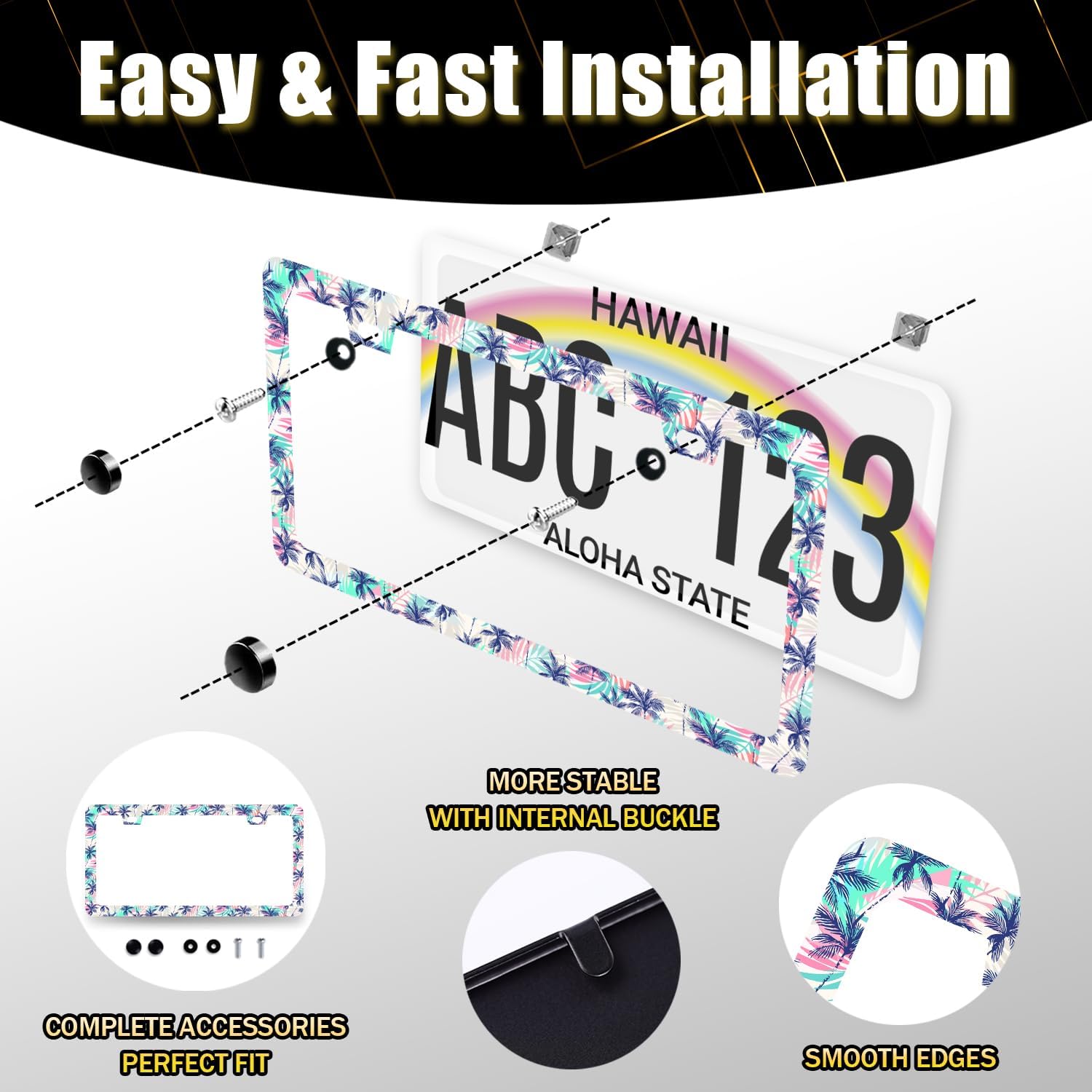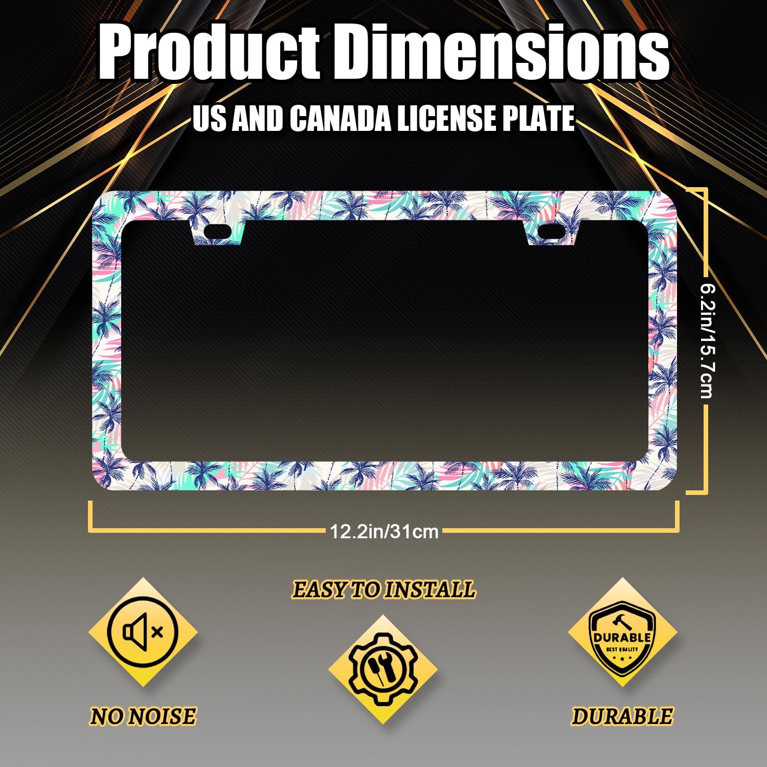 Plam Trees License Plate Frame Hawaii Tropical Leaves License Plate Holder Funny License Plate for Car Decoration Stainless Steel Colorful Auto Parts with Screws for Men Women 12.3" x 6.3"