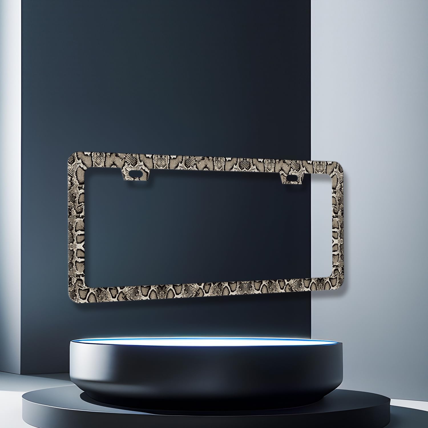 Snake Skin Print License Plate Frame Brown Animal Texture License Plate Holder Funny License Plate for Car Decoration Stainless Steel Snakes Car Accessory with Screws Men Women 12.3" x 6.3"
