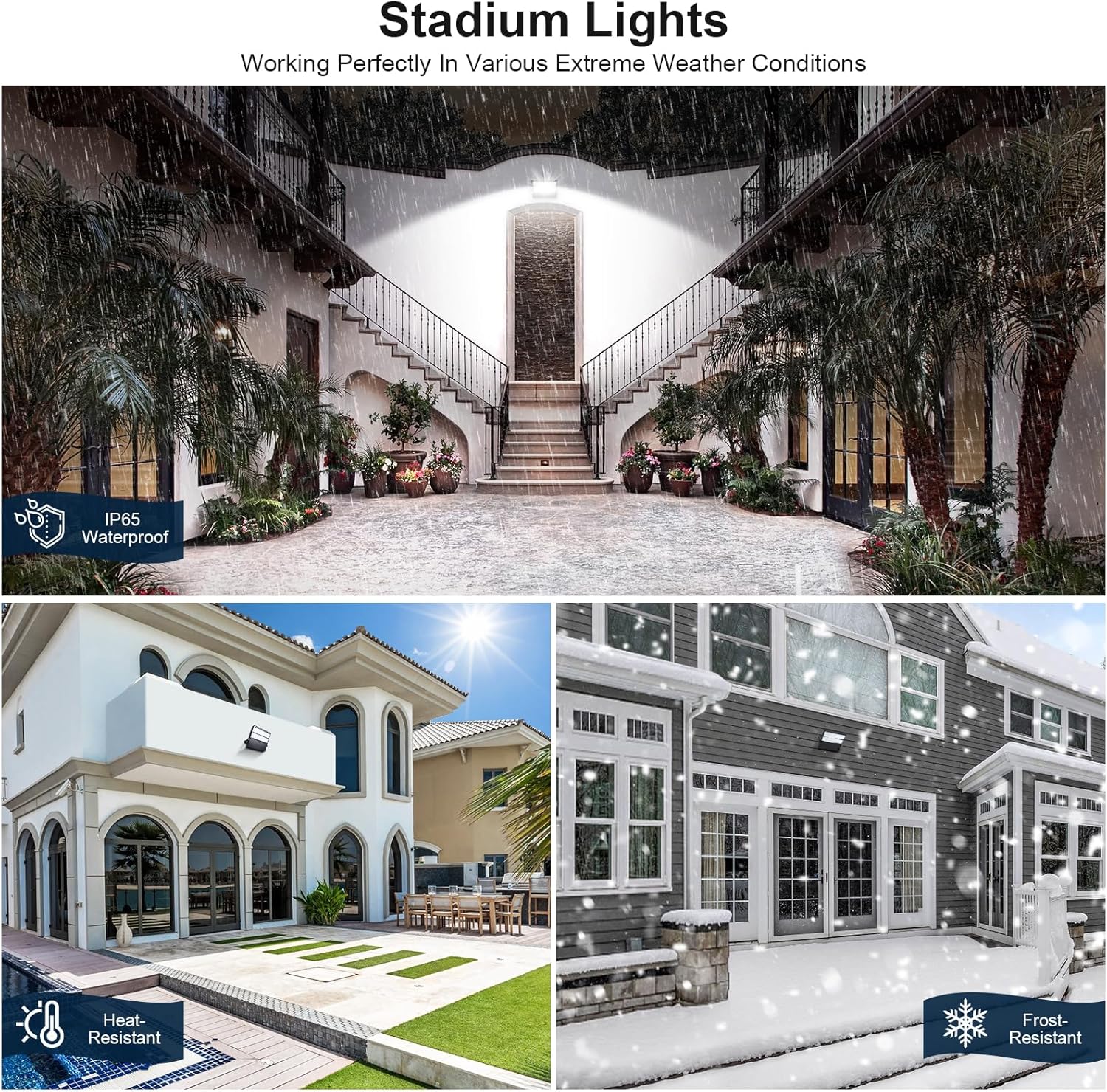 - Widely Applicable-Stadium flood lights outdoor can be installed on poles, walls, and other different positions. Outdoor sports field lights are not only suitable for professional sports venues, but also for various courtyards, streets, backyards,baseball field, horseback riding,garages, tennis courts, warehouses, docks, stages, driveway, lawns, or any other places you need, making every scene sparkling