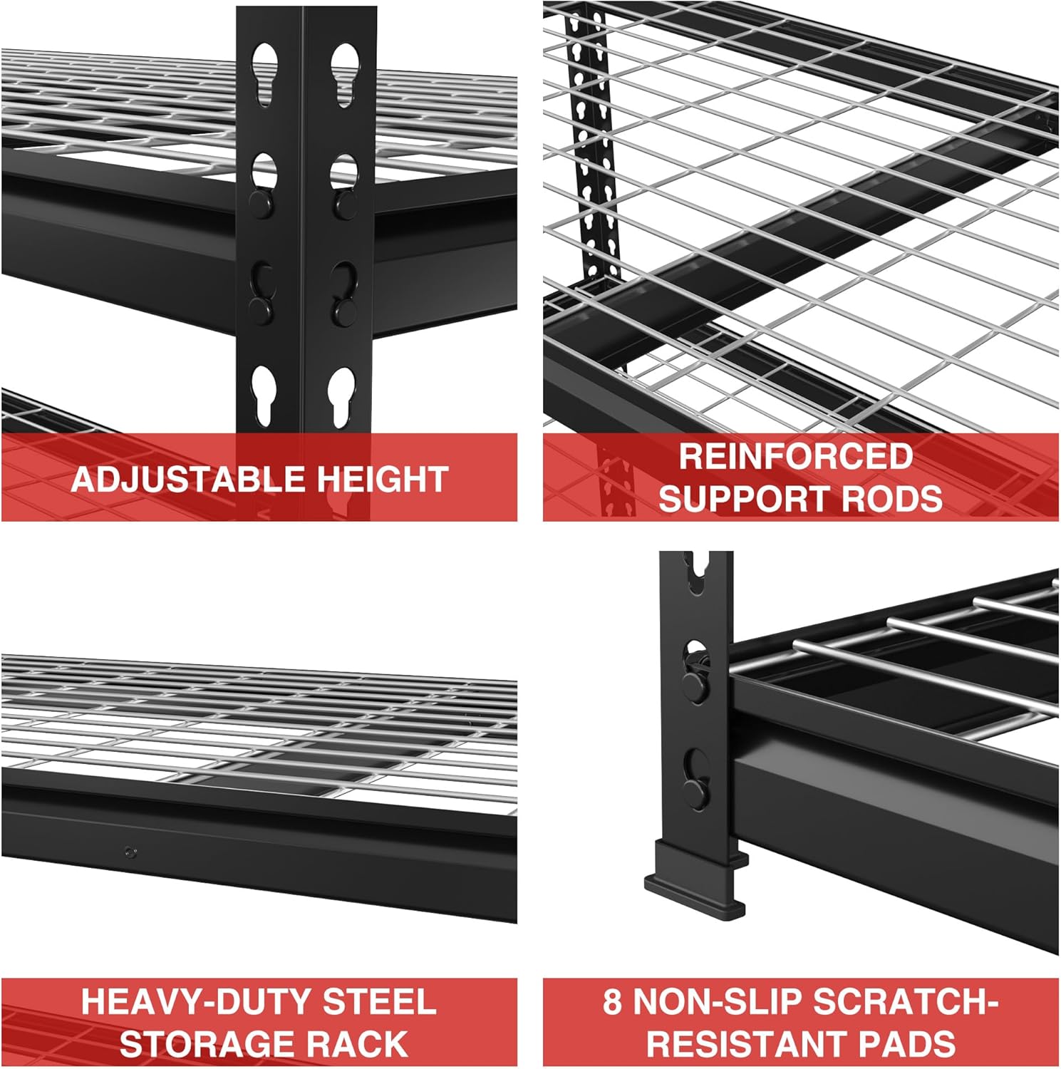 - 【4000 lbs Load Capacity】The maximum capacity is up to 4000 lbs totally, 800 lbs per shelf, which can store much more stuff and tools in your garage or warehouse.