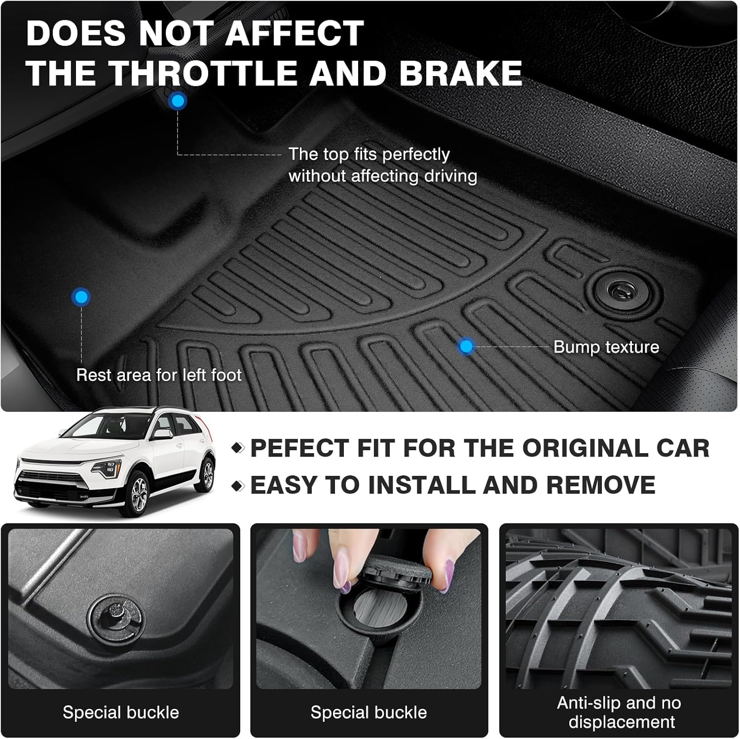 Powerty Floor Mats for 2023-2025 Kia NIRO & Hybrid & HEV - All Weather Floor Liners, 3D TPE, Heavy-Duty (1st & 2nd Row, NOT for EV & PHEV)