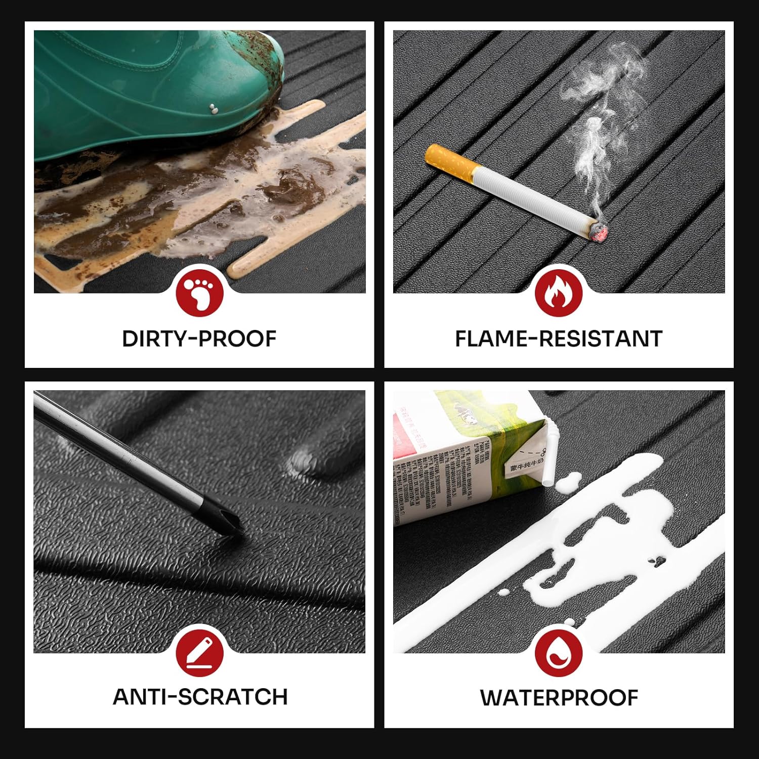 - Enhanced Edge Protection: The floor mats feature raised edges, effectively safeguarding your carpet from spills, stains, dirt, and debris, keeping your original flooring spotless.