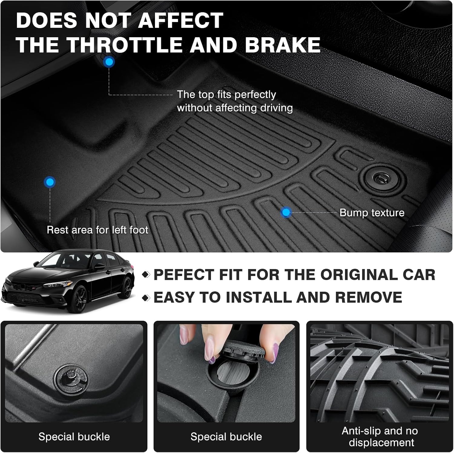 Powerty Floor Mats for 2022-2025 Honda Civic/2023-2025 Acura Integra Accessories All Weather Floor Liner 3D TPE 1st & 2nd Row Floor Mat Heavy-Duty Floor Liners