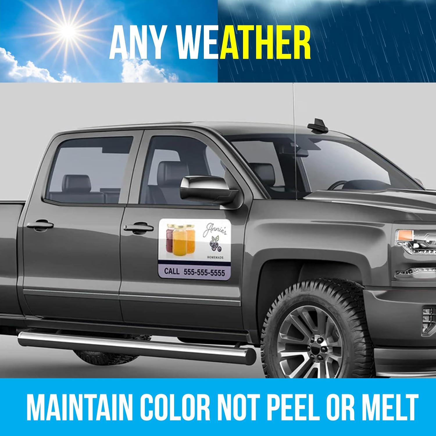 - DURABLE & WEATHERPROOF: These magnetic signs for vehicles are made with a 30 mil thick high-performance magnetic sheet, ensuring longevity and resilience in all weather conditions.