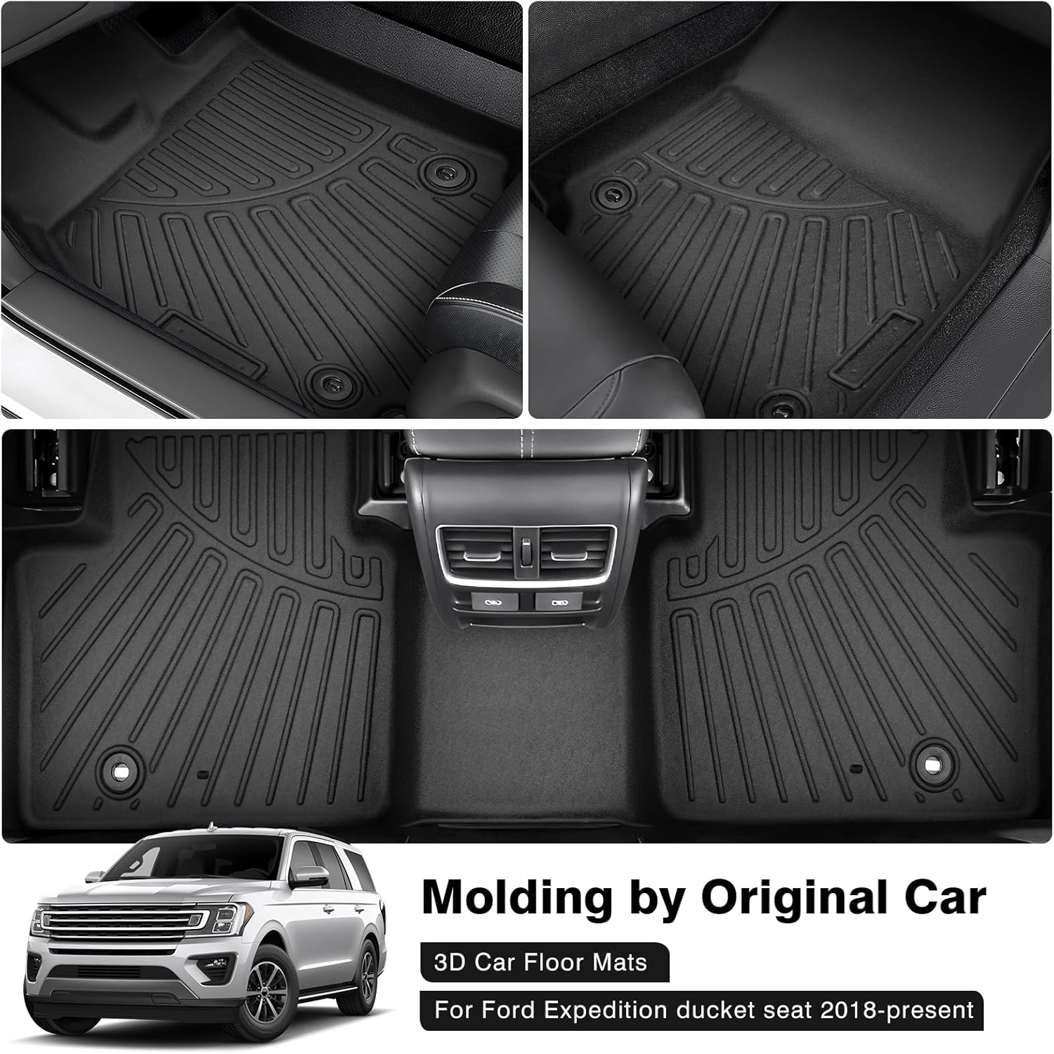 - Crafted for Expedition Exclusivity: Introducing premium floor mats, that seamlessly integrate with your 2018 2019 2020 2021 2022 2023 2024 Ford Expedition 7 seats with bucket seats only through precise 3D-scanned design, eliminating the need for trimming.