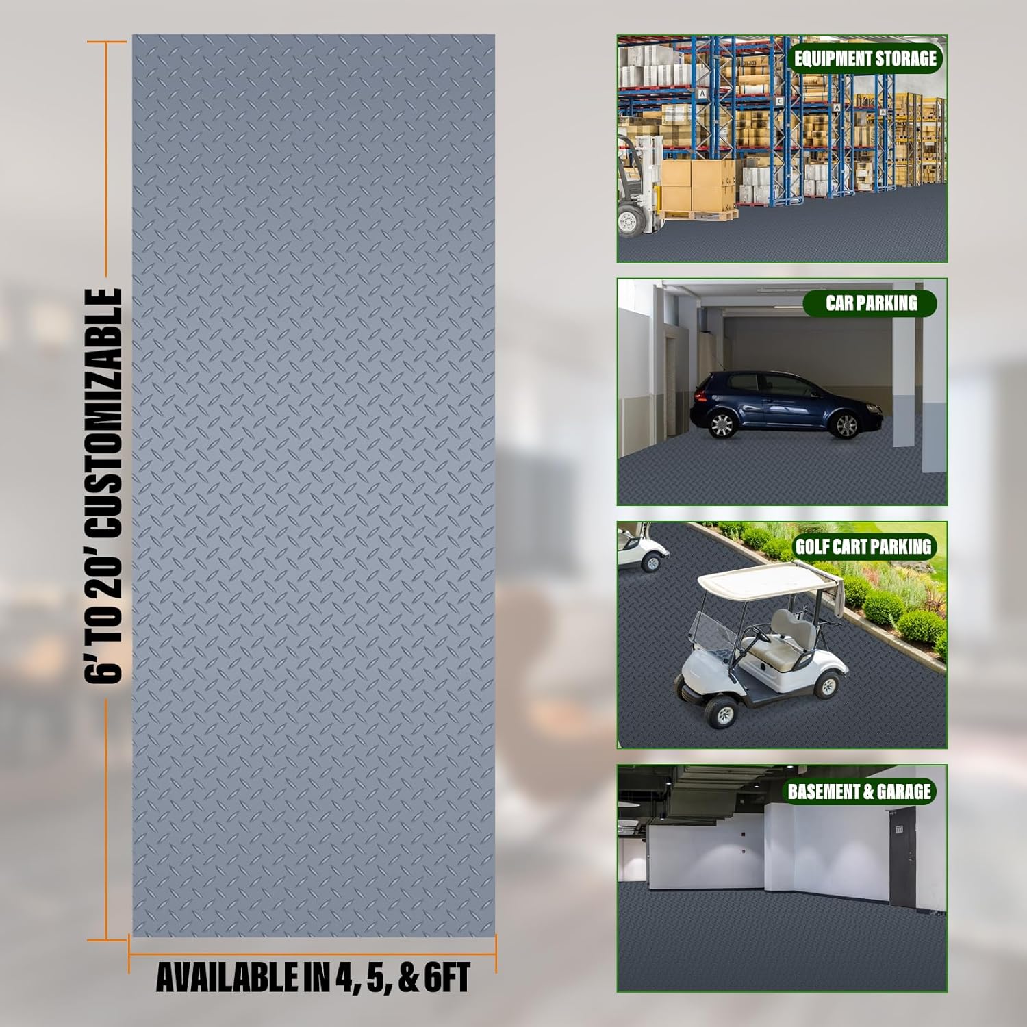 SEAL 4 x 6 Ft Premium Garage Floor Mat, Solid 2.8mm Thick Gray Commercial Grade Heavy Duty Parking Mat for Garage Floor, Golf Cart Parking, Water/Stain Resistant Floor Runner (Embossed Diamond Plate)