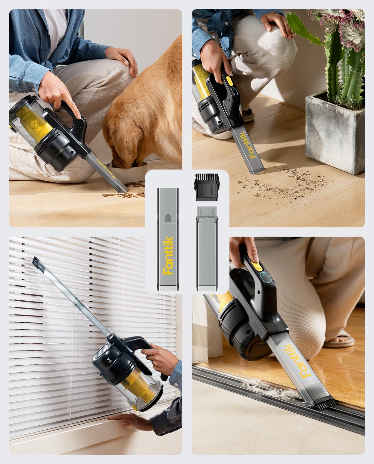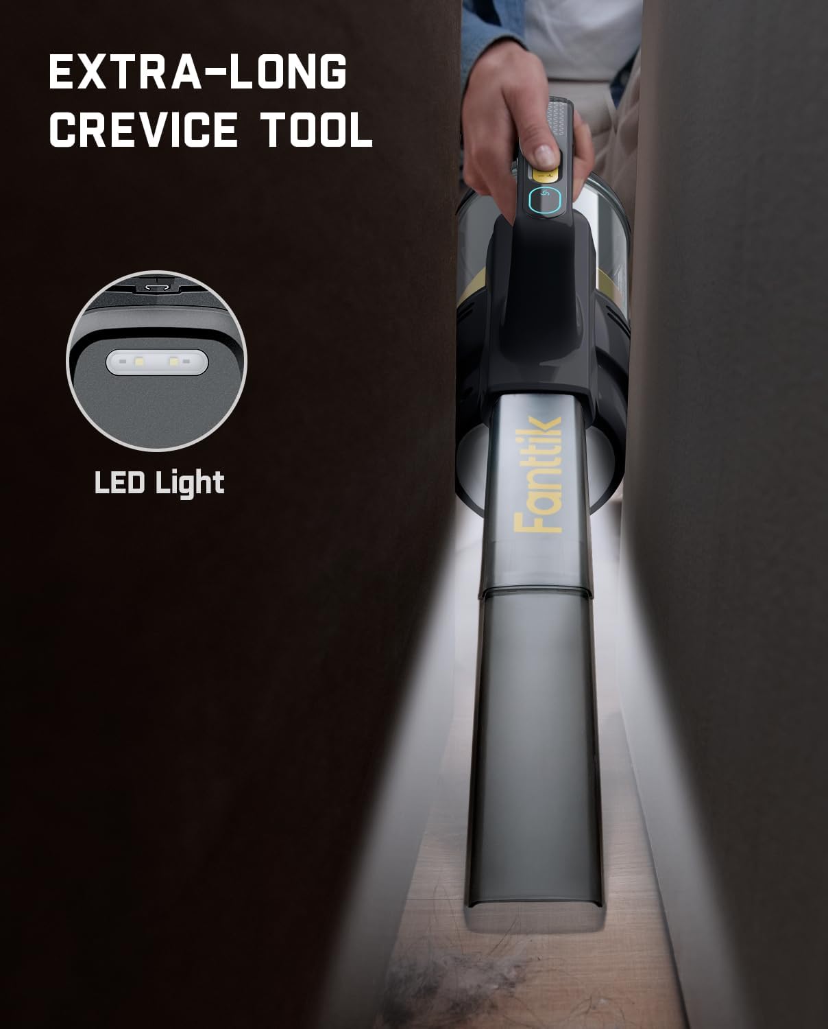 - Extra Long Crevice Tool & Bright LED Light: Fanttik V9 Handheld Cordless Vacuum can easily clean dirt and debris in high traffic areas around the house and works great on your car interior, too