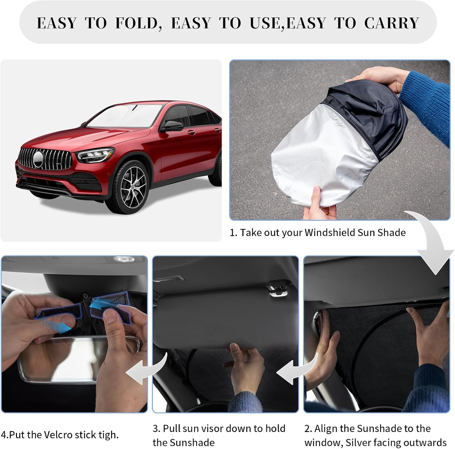 Sun Shade Sunshade for 2016-2025 Mercedes-Benz GLC300 GLK SUV Windshield Cover, 4-Layer Front Window Shade Custom fit Sun Visor 240T Retractable Shield Shade Blocks UV Rays Cooler Car Accessories