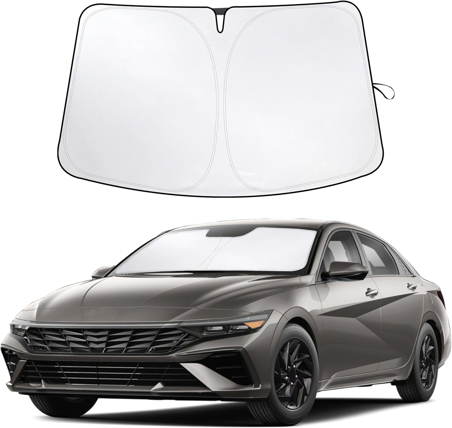 - Precision Fit for Hyundai Elantra (2022–2025) – Specifically designed to fit all Hyundai Elantra models from 2022 to 2025, including SE, SEL, N Line, Limited, Hybrid Blue, Hybrid Limited, and Elantra N trims. This custom-cut windshield sunshade delivers full front window coverage with no gaps, ensuring maximum UV and heat protection with a sleek, glove-like fit tailored to your Elantra’s windshield.