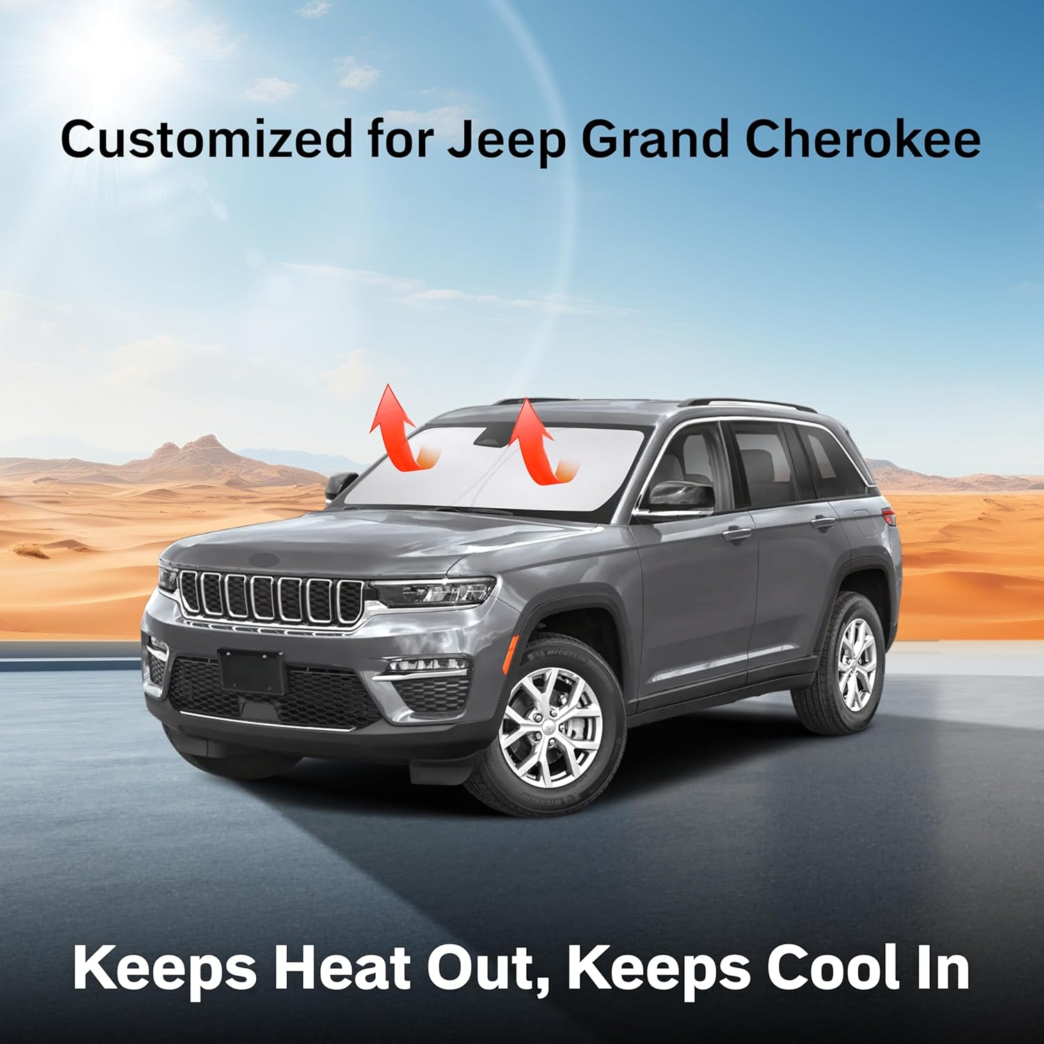 - Custom-Fit Design: Designed for a precise fit, this Jeep Grand Cherokee 2011-2025 (Not for Grand Cherokee L & Jeep Cherokee) windshield sunshade ensures maximum coverage and protection against the sunโs damaging rays.