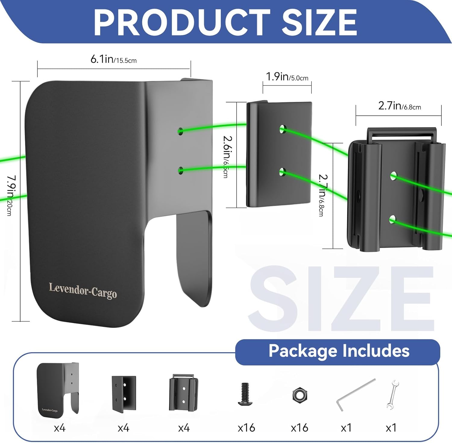 - You will received : 4 x E Track Wheel Chocks,4 x E-Track Mounts, 4 x 45 Degree Angle Adapter,16 x Screw with Nuts, 1 x Wrench, 1 x Hexagonal Wrench