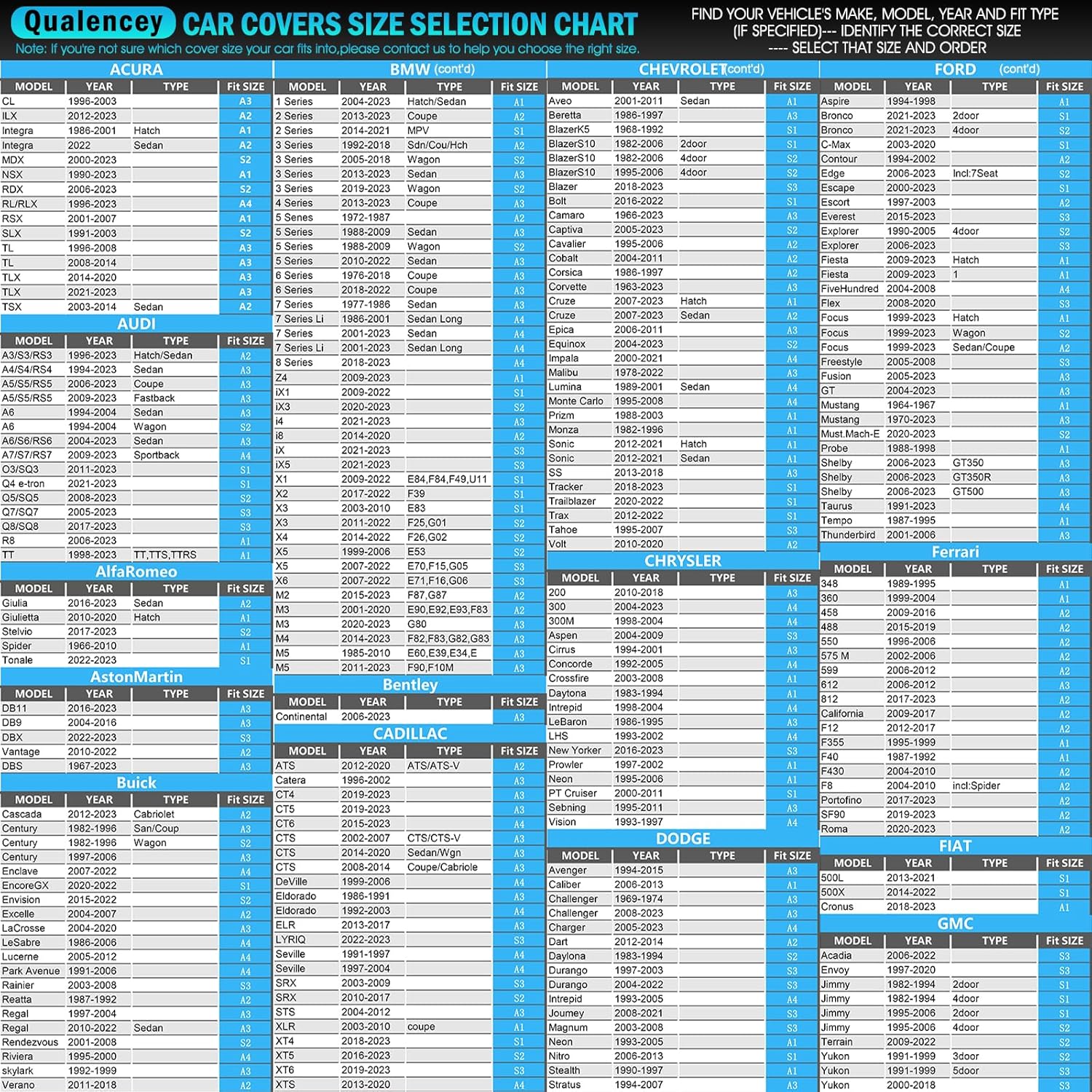 - ăComplete Protectionă: The Qualencey car cover is perfect for indoor and outdoor use, protecting your car from UV rays, snow, rain, frost, sand, dust, leaves, branches, and birds, whether in sunlight or cold weather.