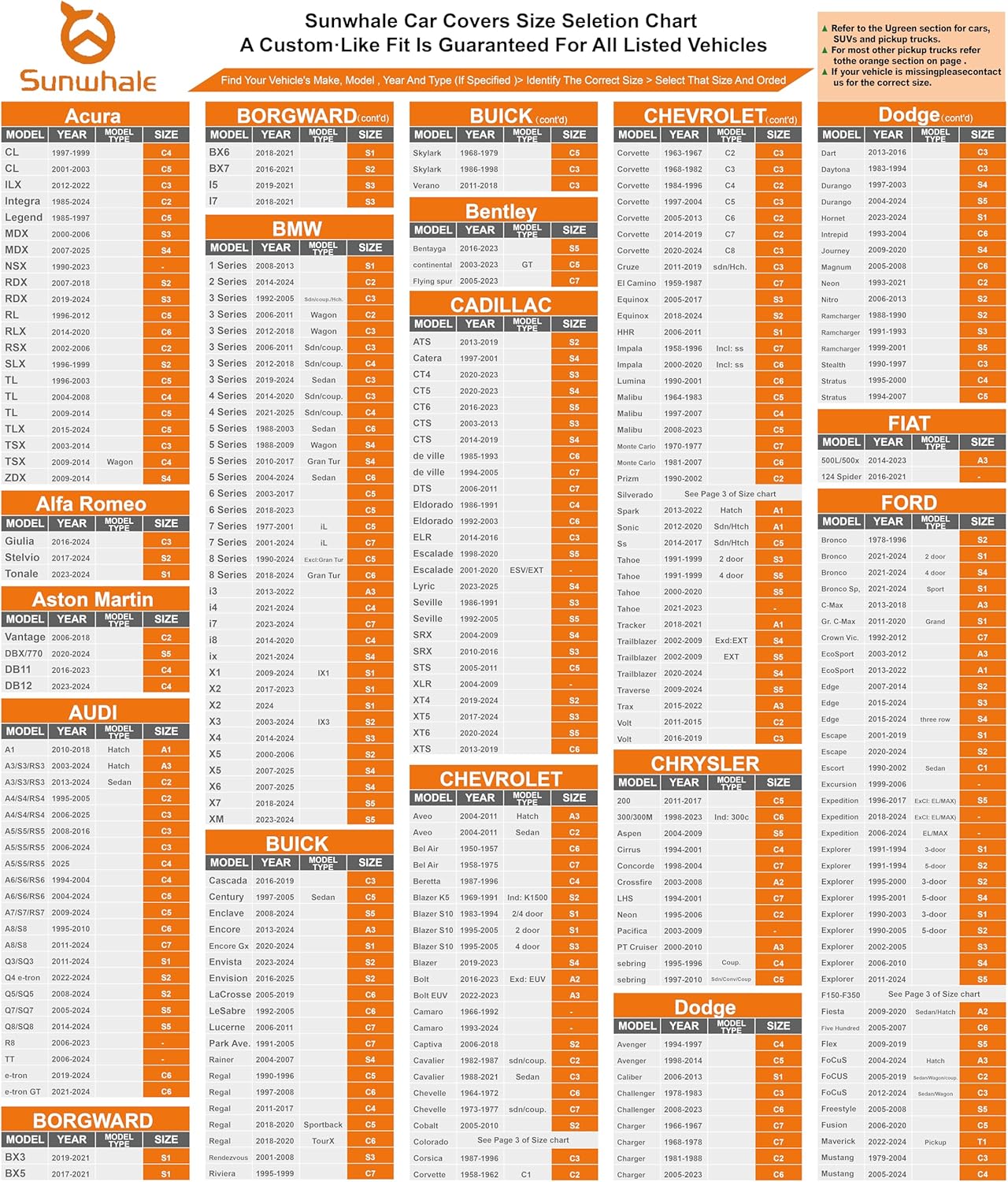 - Precision Fit for Maximum Protection: Sunwhale Car Covers offer a precision fit for every vehicle listed in our size chart, ensuring the best possible protection against the elements.Size :194x74x59 inch fit most sedan Honda Toyota Audi Volkswagen BMW Kia Chevy Cobalt etc . Please Measure Your Car's Length First.(See the Size Chart in images )