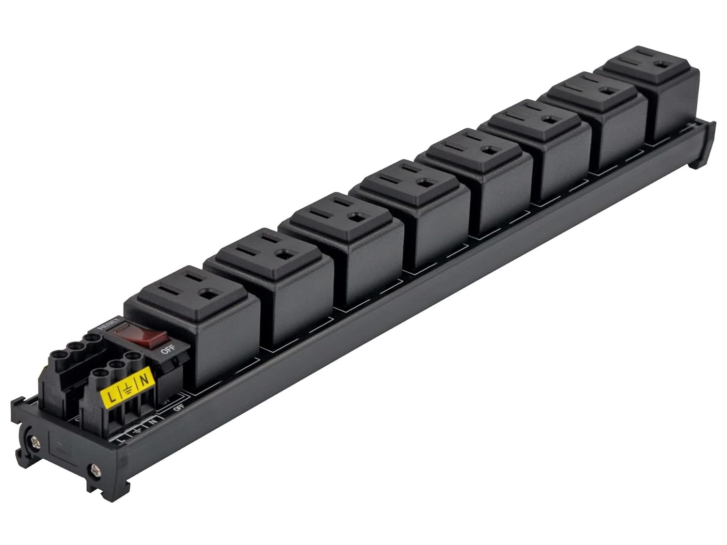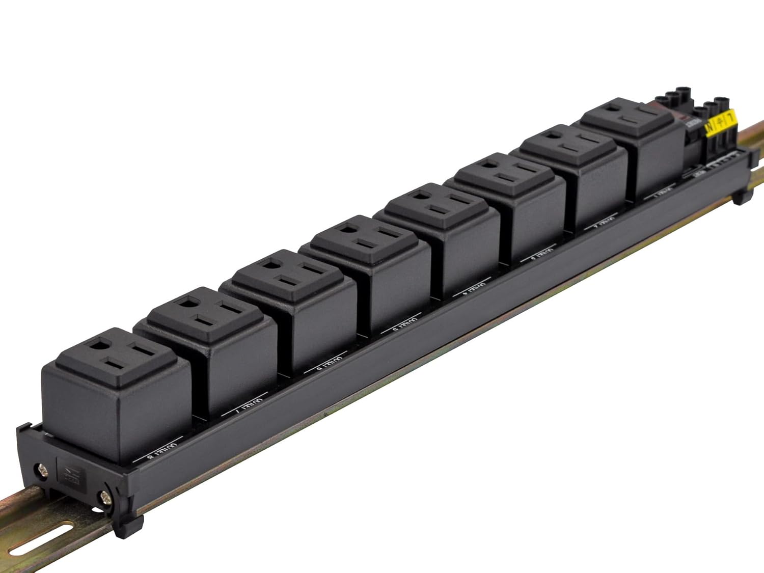 DIN Rail Mount AC 120V NEMA 5-15R 8 Receptacles Outlet Power Strip Module, with Rocker Switch Thermal Circuit Breaker Overload Protector