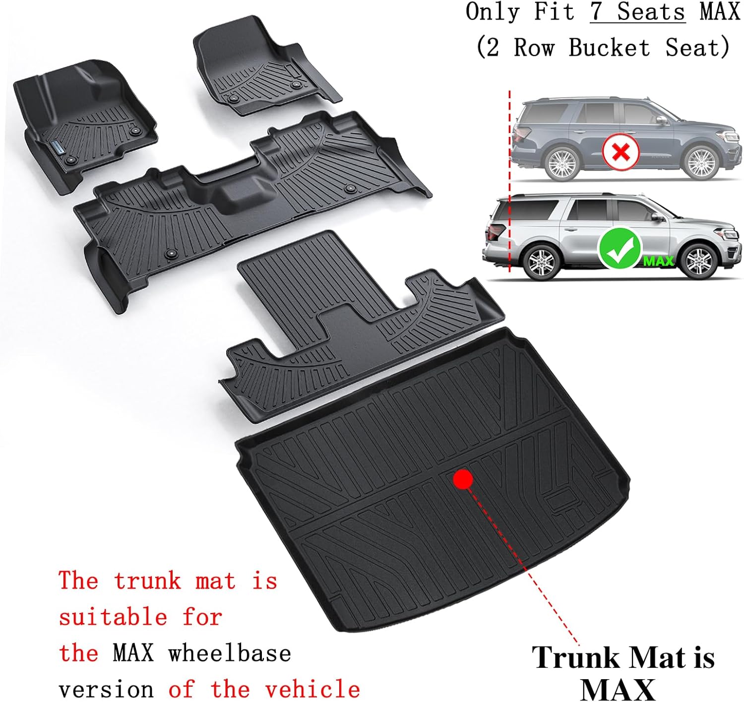 - 【🚗Custom Fit for Ford Expedition MAX 2018-2024 (Only Fit 7 seats) (2 Row Bucket Seat)】.The SANBAN-AXE floor mats is high-precision laser measured, which means that our customized fit will provide the best coverage range, looking like the mat included with your car. A specially designed fixing system and anti slip tip are used on the cushion to lock it in place.