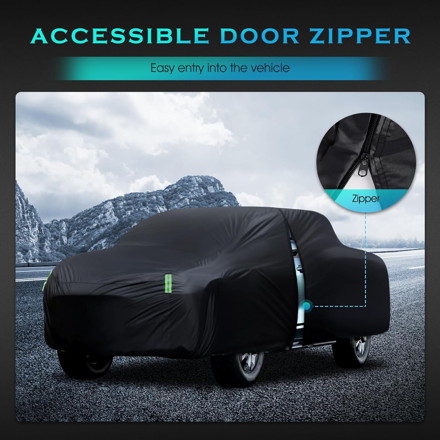 - ăProfessional Design ă: The zipper design of the driver's door makes it convenient for you to enter and exit the car; The front and rear elastic hem makes the car cover more snug, with four tire windbreaks and a long strap in the middle with a quick release clip to protect your car cover from strong winds.