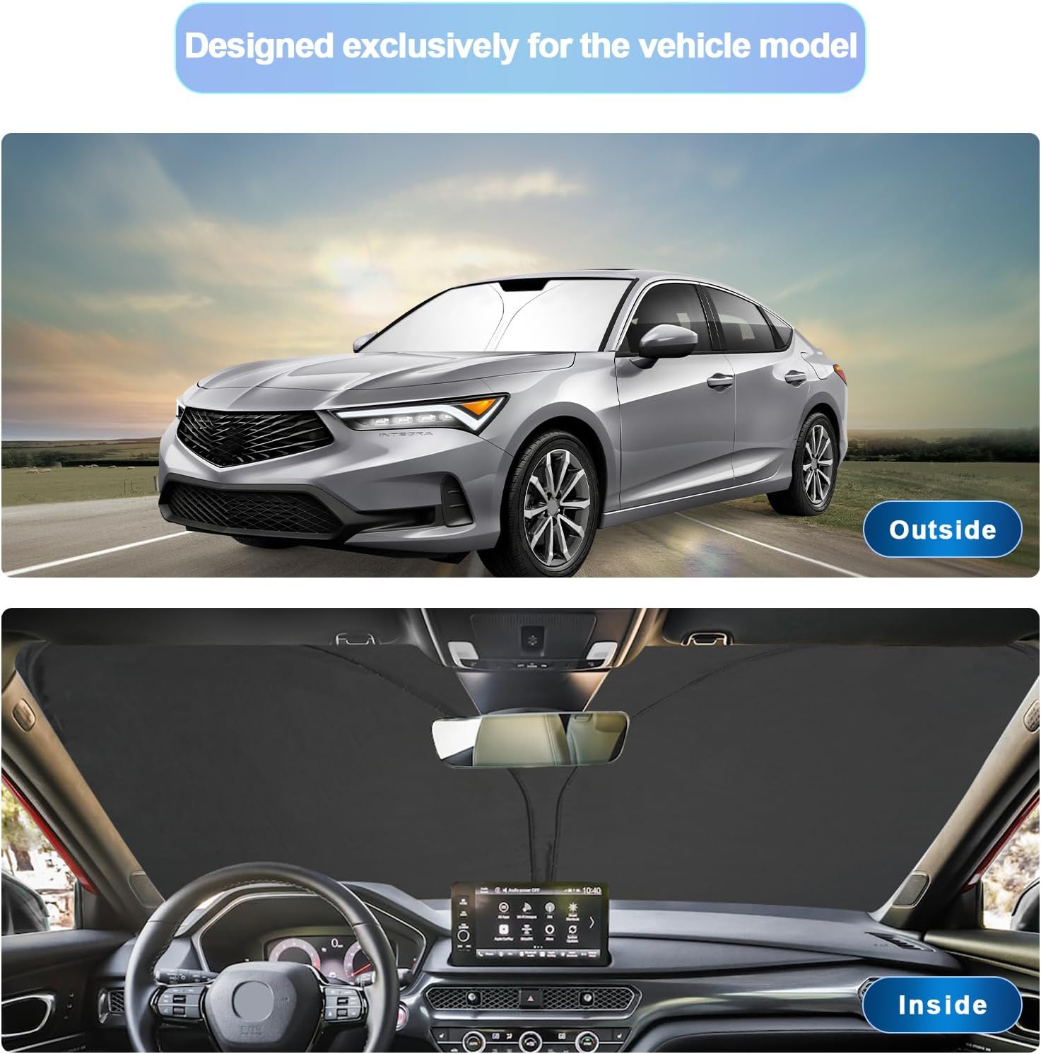 - 1.Custom Fit: this windshield sun shade is custom designed for 2023 2024 2025 Acura Integra/2022-2024 2025 Honda Civic sunshade for 2023 2024 2025 Acura Integra (base)/A-Spec/A-Spec with Technology package/Type S accessories front window. You don’t need to worry about oversize or too small,consider it if you need a car protector cover that protects your car interior from sunburn.