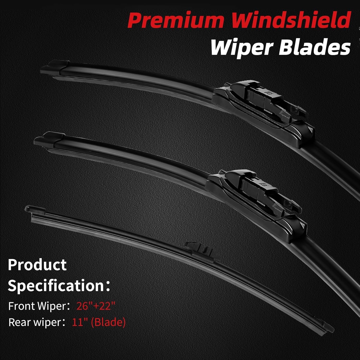 OTUAYAUTO Premium Windshield Wiper Blades - Replacement for Ford Explorer 2011-2023 - Precision Fit, All-Weather Performance, Front and Rear Wiper Blades, Pinch Tab - 26"+22"+11" (Pack of 3)