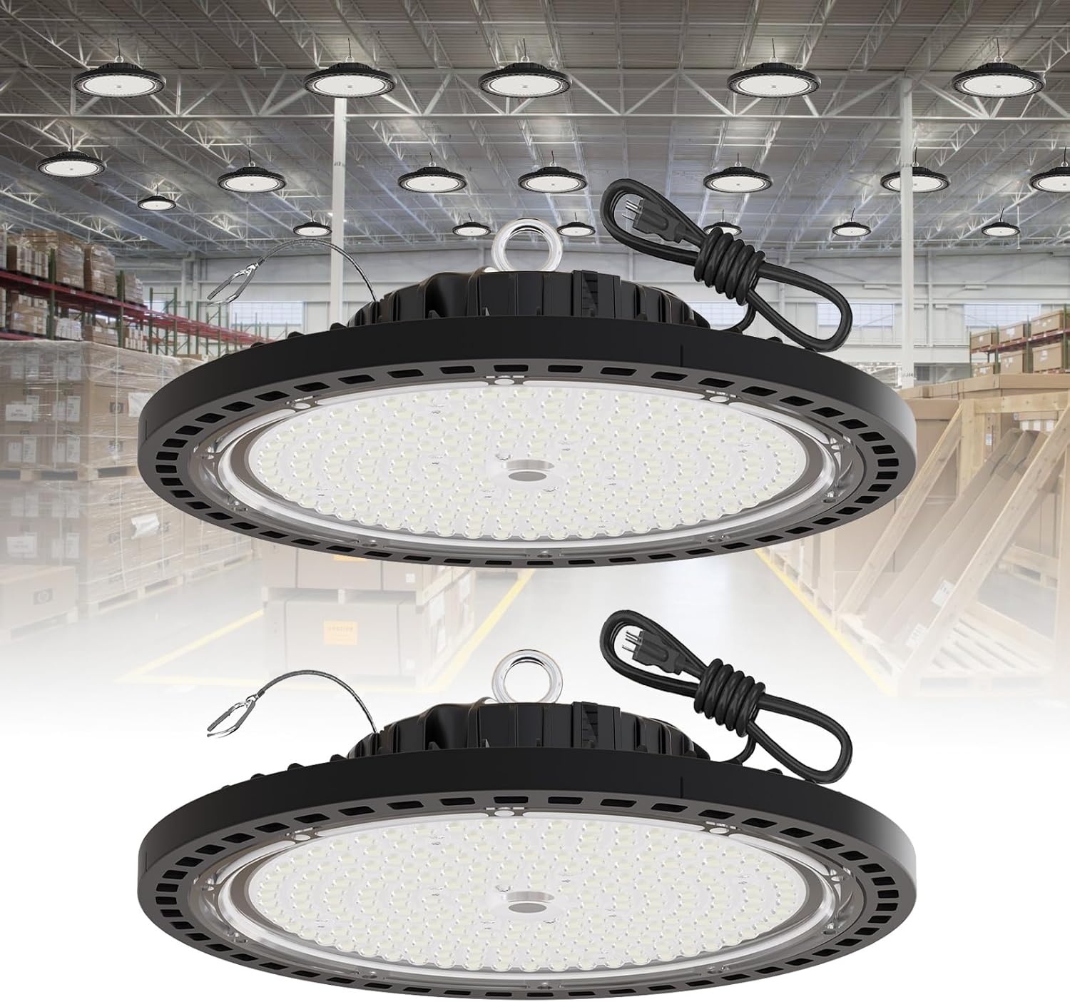 - 【Simplified Installation】Includes 5ft UL-listed cord + US plug + safety cable. Mounts in minutes without electrician - compatible with most commercial bay lighting setups