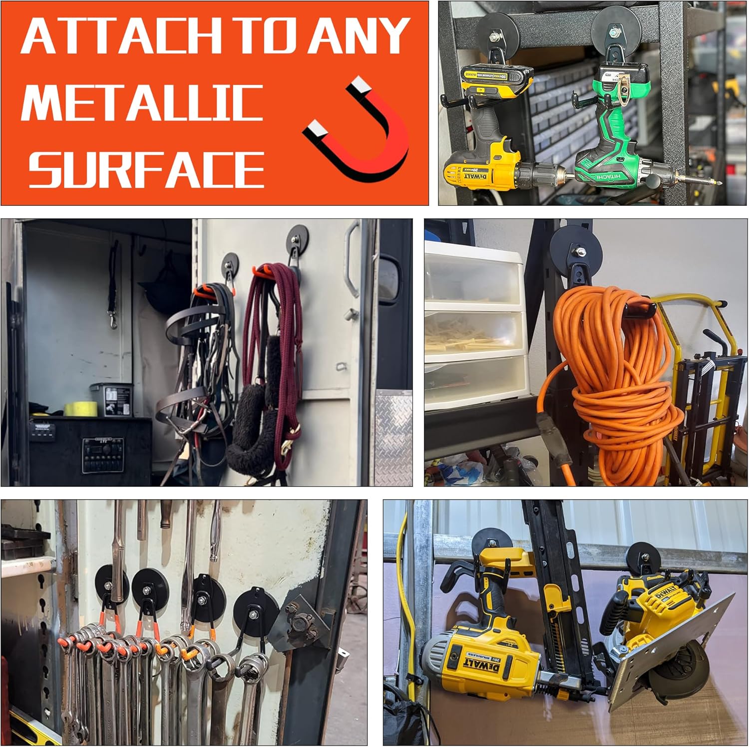 - [Rubber Coated Magnet Large Hook]: The rubber coated magnet is stable and non-slip, protecting the surface from scratches or damage, it's the best partner for your garage,barn,basement,workshop,etc
