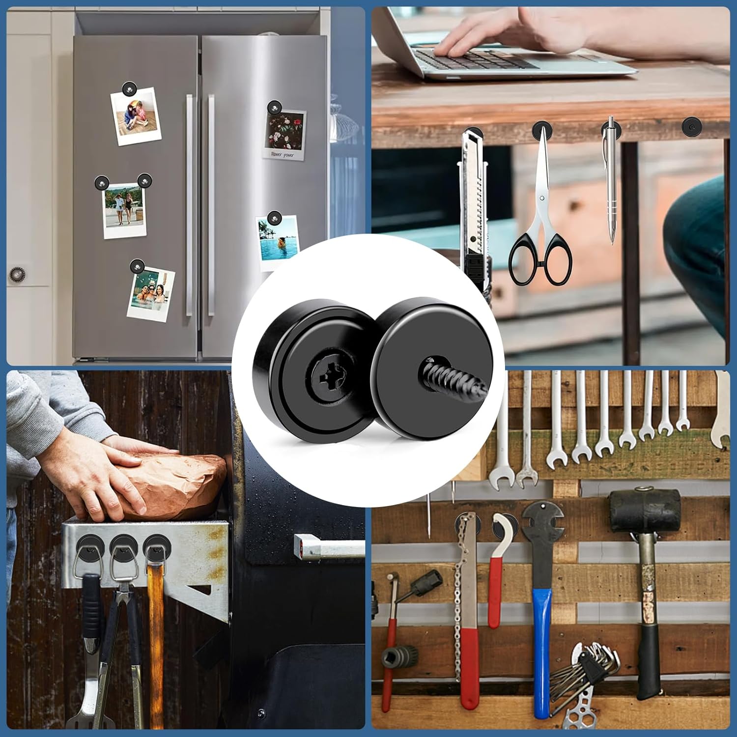 - 【ESSENTIAL MAGNETIC TOOLS】Our industrial strength magnets heavy duty provide a convenient storage solution. Additionally, their strong magnetism enables them to securely hold metal tools with ease. Whether in workshops or garages, these magnets with countersunk holes excel at organization.