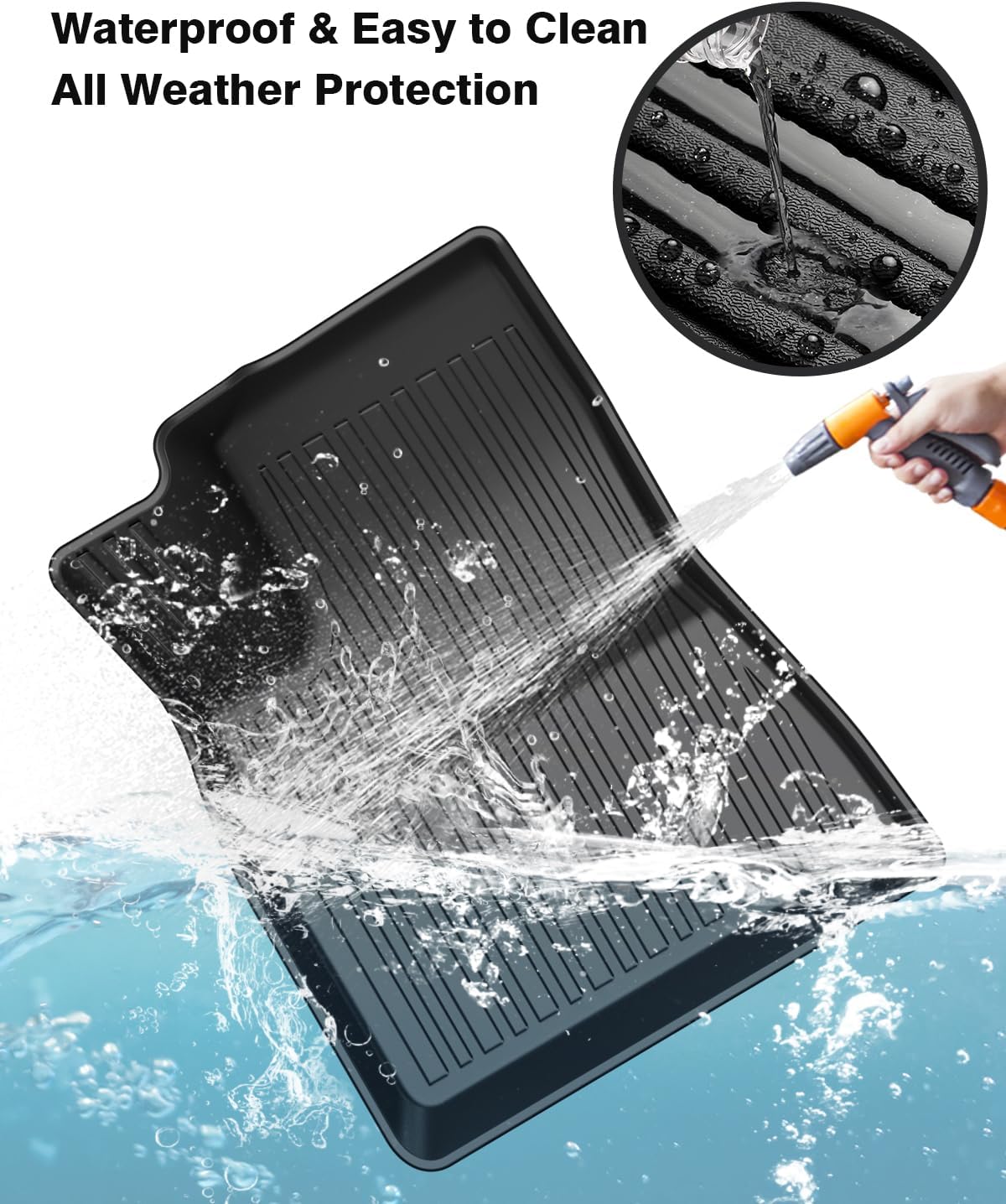 - All Weather Floor Mat&Cargo Mat: These floor liners & rear trunk mat offer protection against outside variables (such as mud, liquid and snow) and will prolong the life of the car interior in all weather (rain, fog, snow, etc). The floors mats&cargo liner are easy to clean by wiping, rinsing, or simply using soap and water.