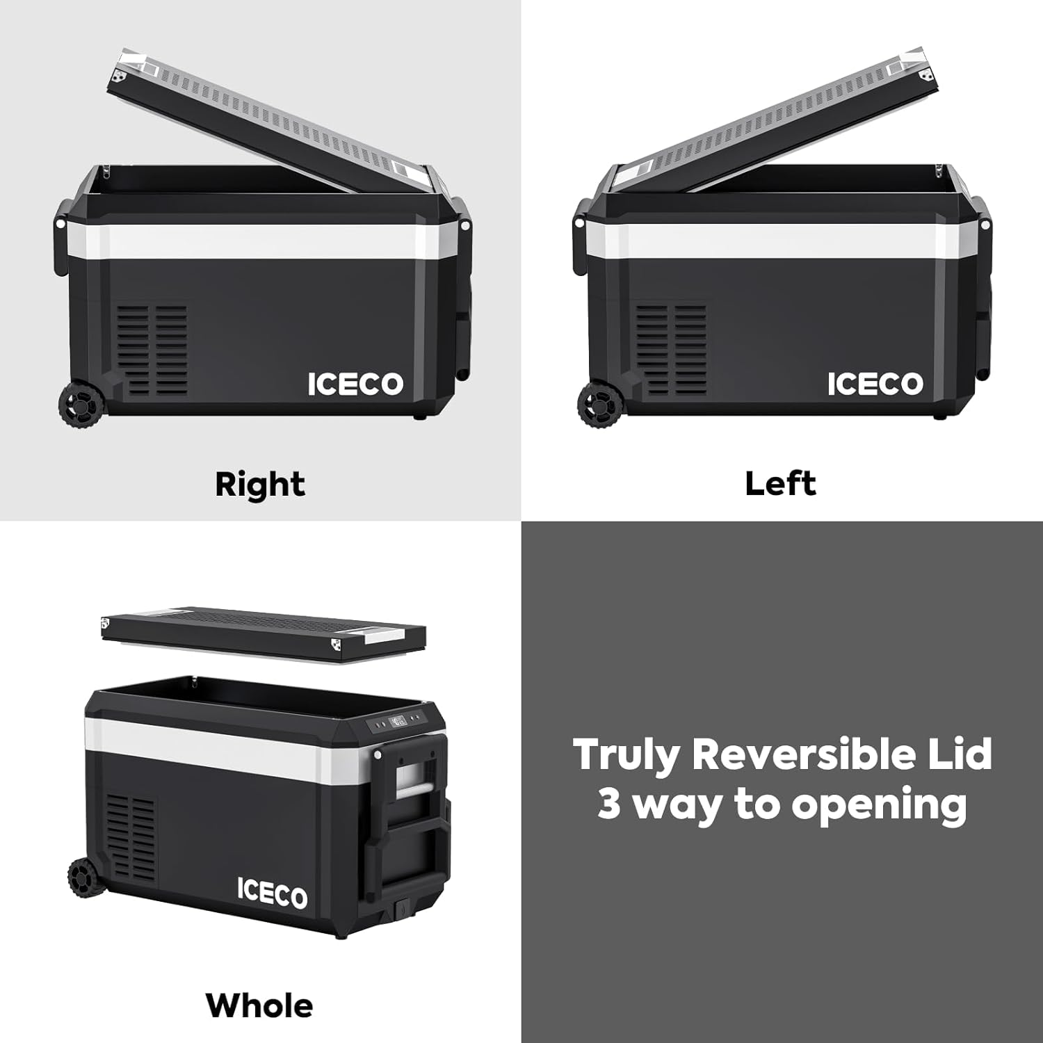 - Innovative Multi-Opening Lid - Access your JP30Pro 12V Car Fridge effortlessly with a versatile lid that opens from either side, no assembly required, enhancing convenience for your Portable Freezer.