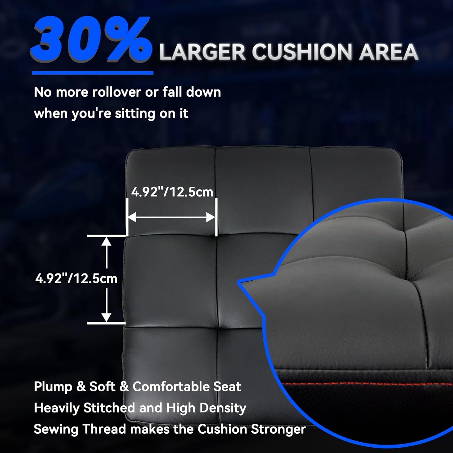 - 【30% Larger Seat Cushion】The seat cushion of the stool chair consists of 9 square cells with a circumference of 4.92 inches, and each square is 30% larger than the other chairs. Plump, Soft and Comfortable seat, no more rollover or fall down when you're sitting on it. Heavily Stitched and High Density Sewing Thread makes the Cushion Stronger