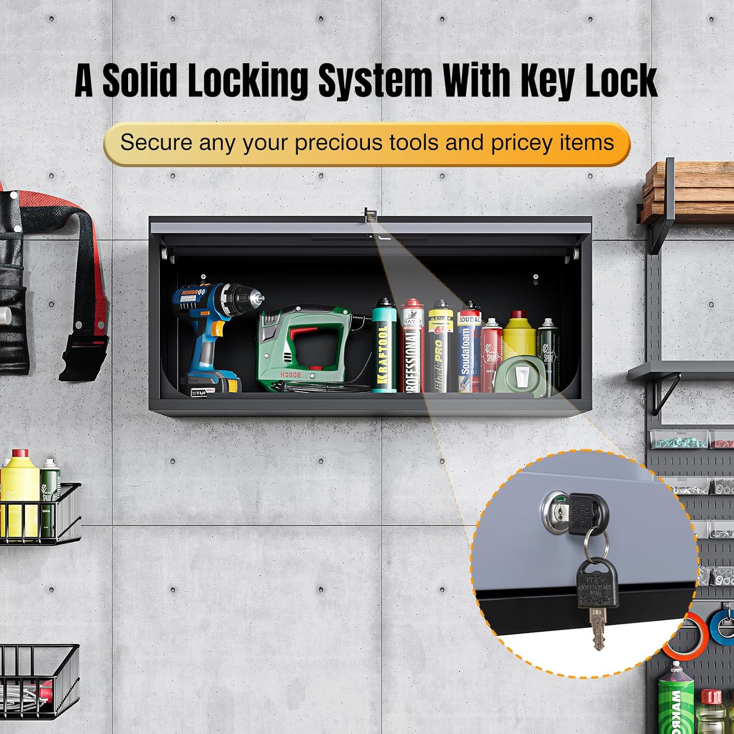 - â â€ăA solid locking systemă: This wall storage cabinet comes with a lock with 2 keys, which is a plus to secure any important and pricey items that you are storing. The lockable feature is the cherry on top, ensuring your precious tools are safe from pesky tool gnomes.
