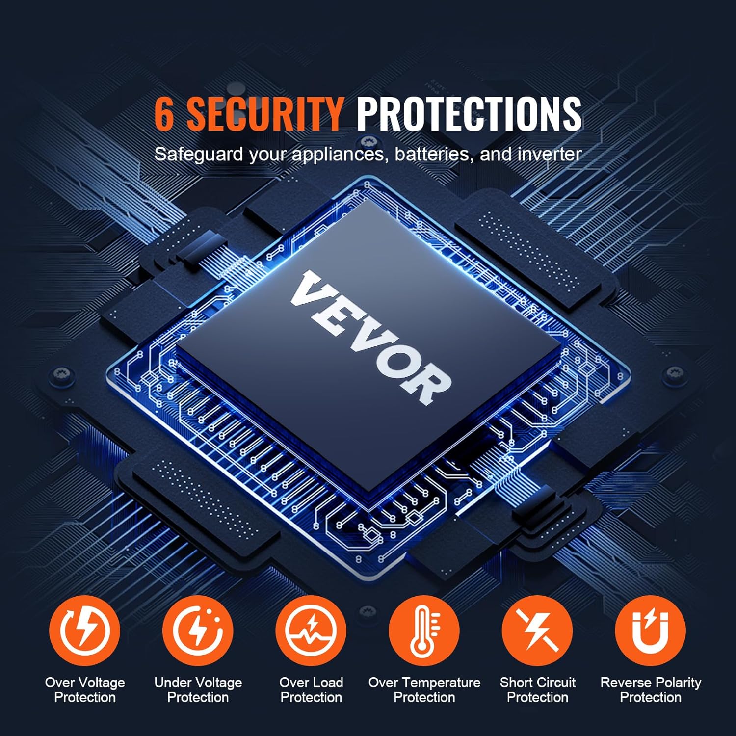- Certified Security, Six Protections: CE/FCC certified for your peace of mind, our sine wave power inverter boasts 6-layer protections, including over voltage protection, under voltage protection, over load protection, over temperature protection, short circuit protection, and reverse polarity protection. Plus, equipped with 100% pure copper cables, our inverter minimizes power conversion loss, ensuring your devices stay powered up efficiently and safely.