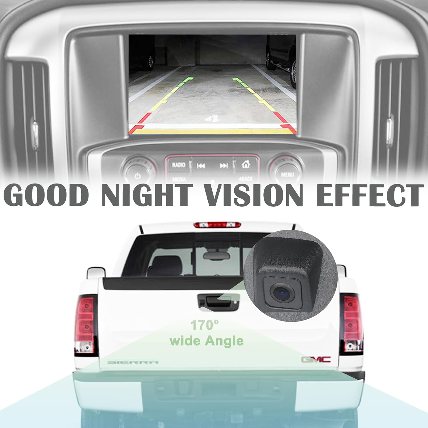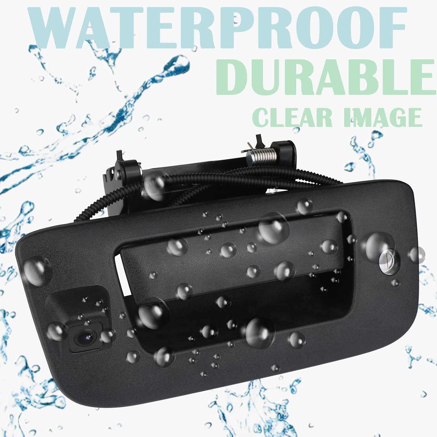 - FEATURES:The black tail gate door handle is made of good plastic and metal,rear view camera using high-definition sensor,clear image, good night vision effect,and waterproof, durable,corrosion resistance,170°perfect view Angle design and wide field of view without blind spots,to help you safely,reverse and park,solve your safe driving problems