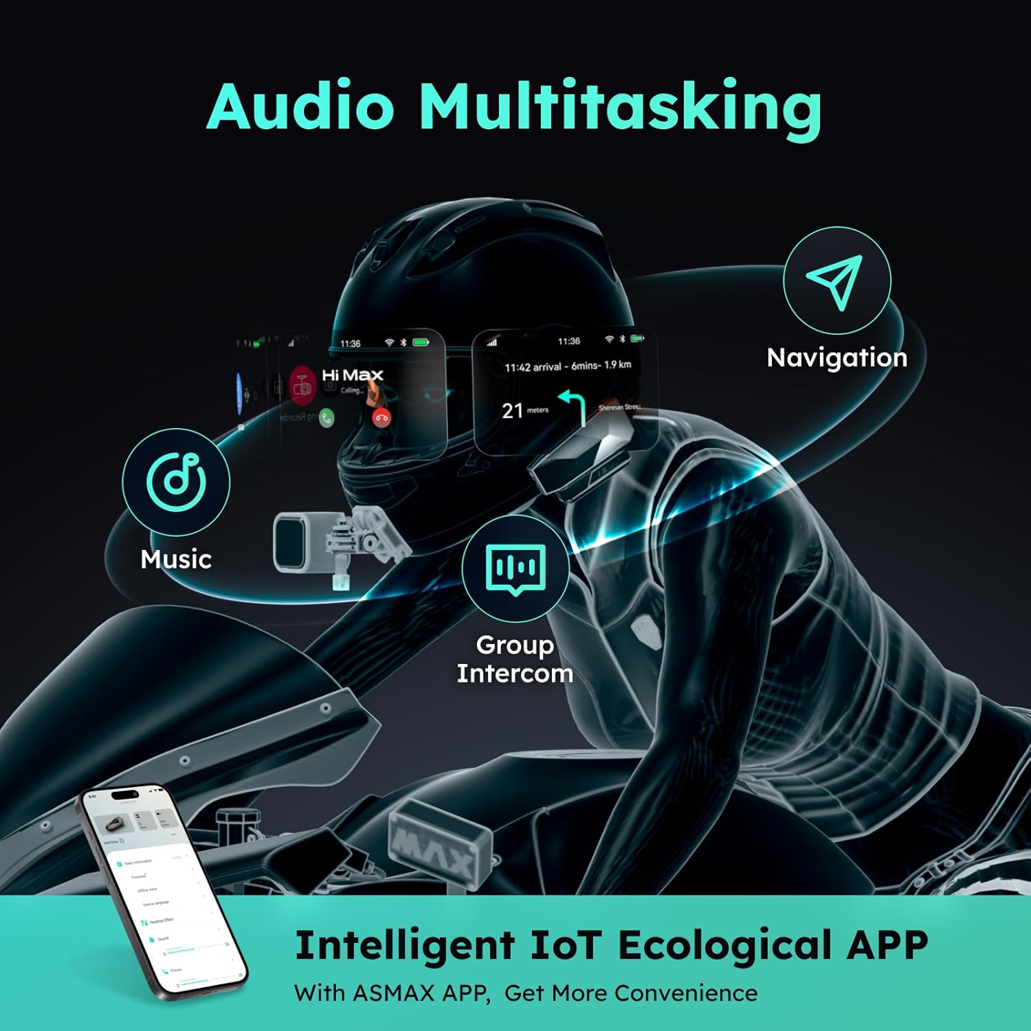 - >>Voice Control, App & Button Operation<: Activate offline voice commands with 'Hi Max' for hands-free calls, music, and navigation. Use the ASMAX World app to customize a wide range of features, including sound effects, LED lighting, auto-shutdown time, and more. Physical buttons offer precise control when needed.