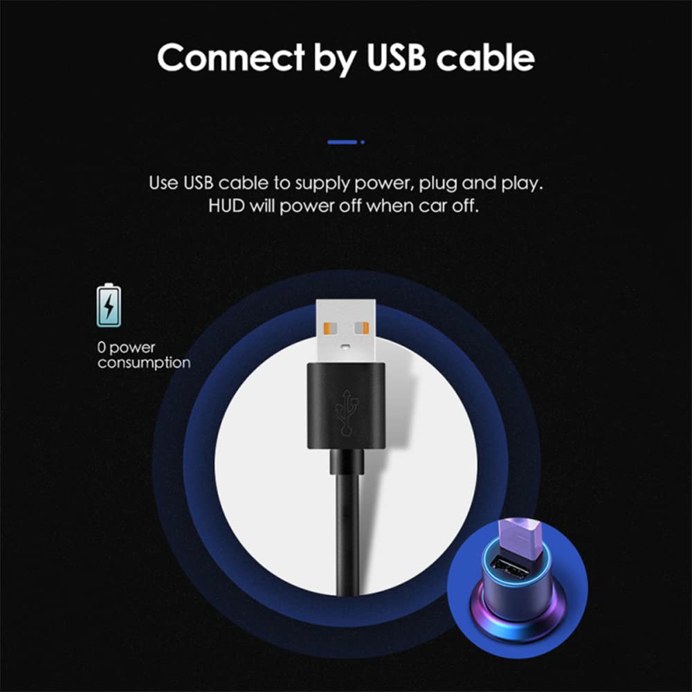 - 【Easy To Use】This car head-up display is easy to install, just plug and play. You only need to connect the USB cable to the HUD and the car cigarette lighter. However, please do not use it in a car with 24V or above.