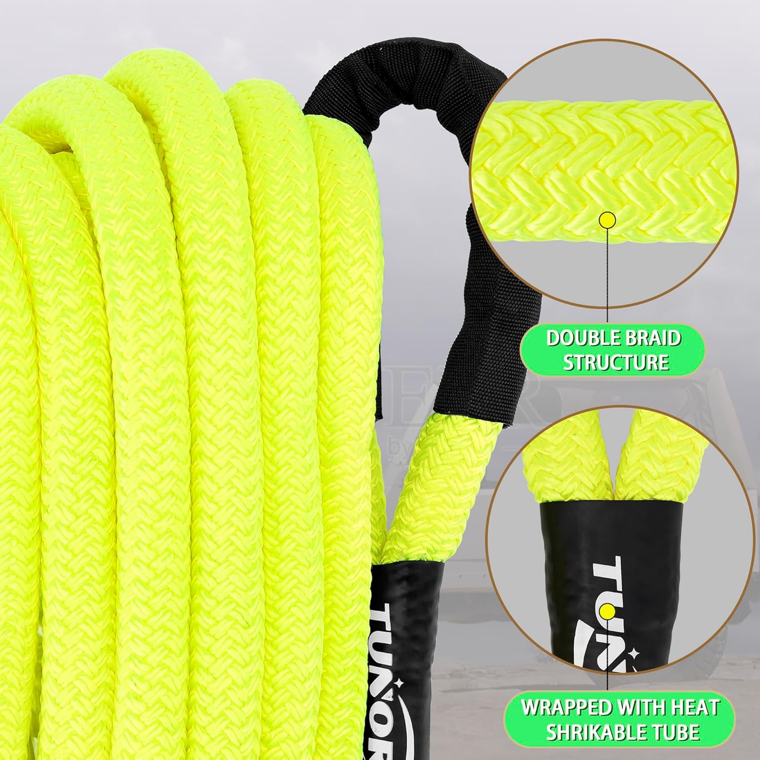 Kinetic Recovery Tow Rope Heavy Duty Offroad Snatch Strap for for Trucks SUV UTV ATV Tractor Car Jeep, Tractor, Bobcat, Ram 2500, Silverado 2500, Ford F250 (Green, 7/8" x 20')