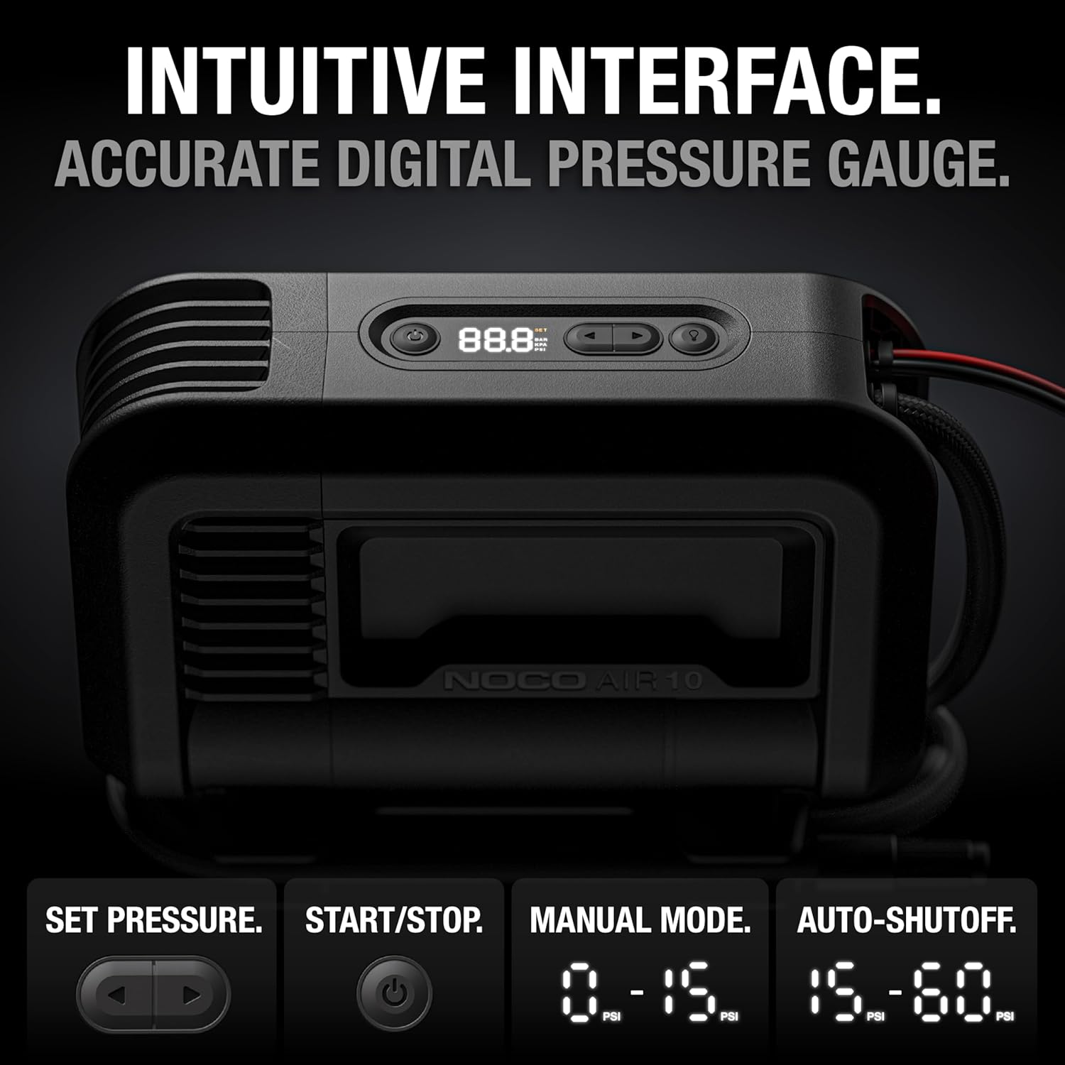 NOCO AIR10: UltraFast 10A Tire Inflator - 12V Portable Air Compressor Pump, 60 PSI Max – 36 SLPM Airflow Inflates 0–40 PSI in 3.8 Minutes – Digital Gauge + Auto-Shutoff
